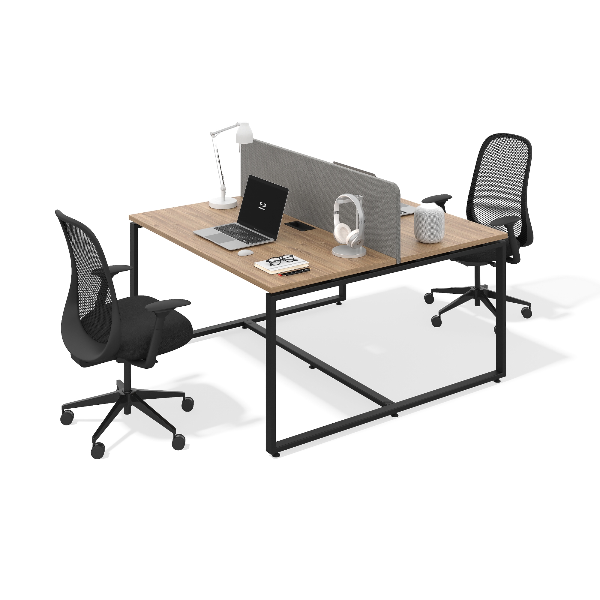 Бенч-система для офиса на 2 рабочих места. Металлический каркас обеспечивает необходимую прочность и долговечность. Благодаря особому порошковому покрытию металла, его поверхность не подвержена царапинам. Каждое рабочее место можно оснастить необходимым дополнительным оборудованием: кабель-каналами для проводов, ящиками для хранения документов, полками, лючками для проводов, а также различными аксессуарами: креплениями, зажимами, крючками для сумок, подкатными платформами для системного блока ПК.