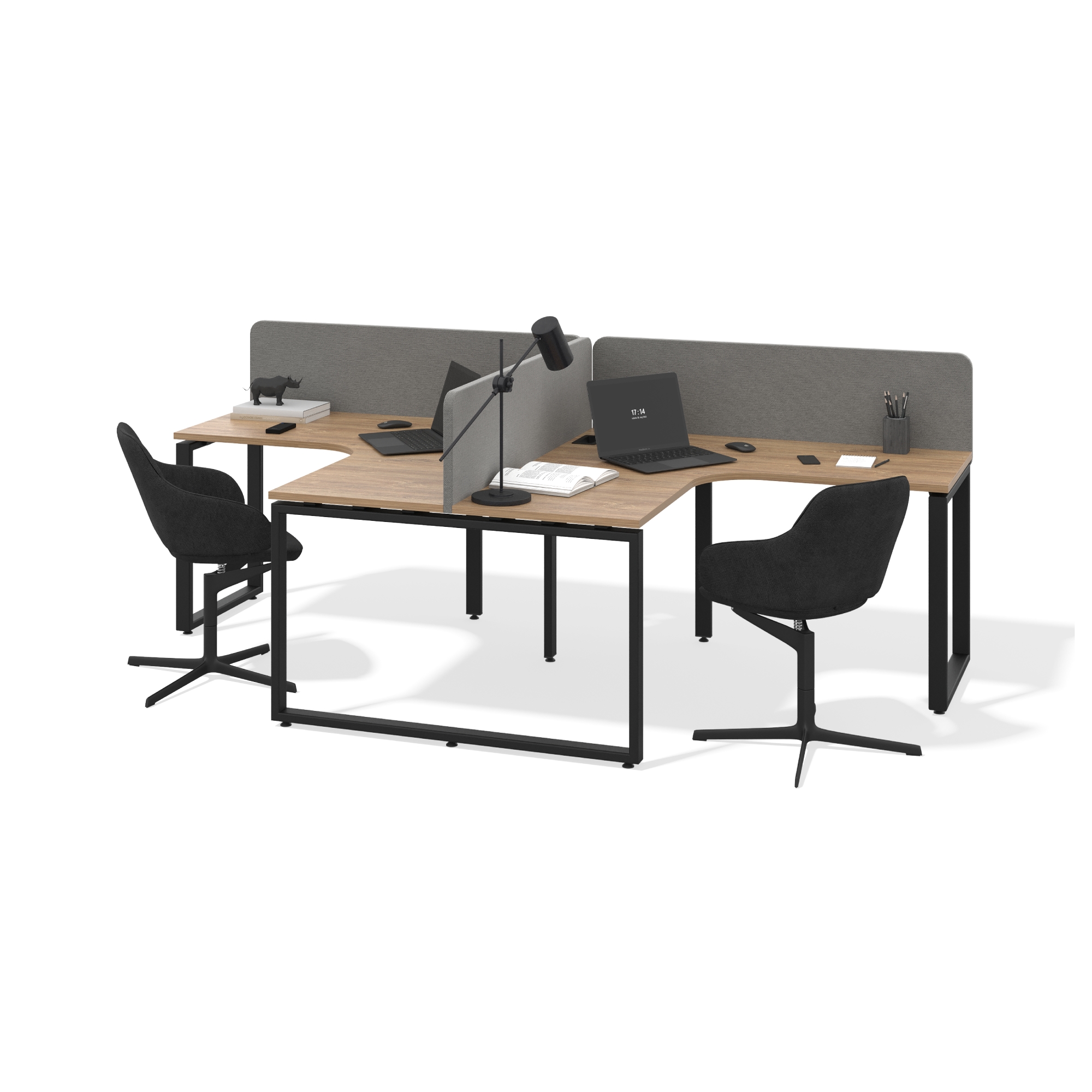 Угловая бенч-система Лебера — идеальное решение для организации рабочих пространств в офисах и коворкингах. Доступна в вариантах на 2 и 4 рабочих места, что позволяет адаптировать систему под любые потребности. Бенч-системы предусматривают всё для вашего удобства: акустические перегородки для улучшения звукоизоляции, лючок для проводов, корзина для размещения кабелей. Каркас из высококачественного металла с порошковым покрытием гарантирует долговечность и устойчивость, а регулируемые подпятники на неровных поверхностях обеспечат стабильность.