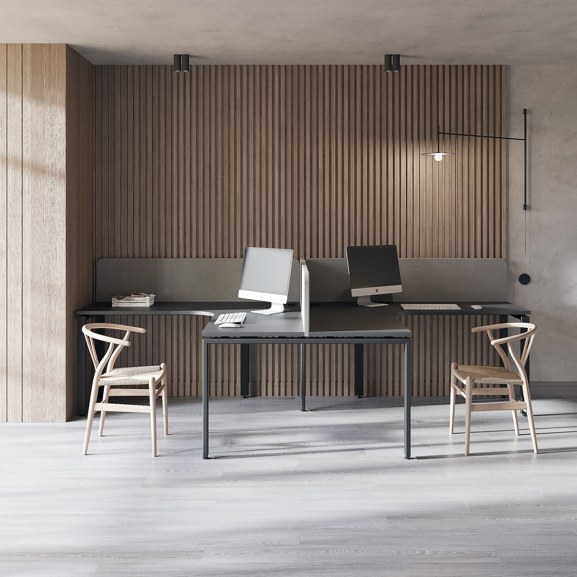 Угловая бенч-система Лебера — идеальное решение для организации рабочих пространств в офисах и коворкингах. Доступна в вариантах на 2 и 4 рабочих места, что позволяет адаптировать систему под любые потребности. Бенч-системы предусматривают всё для вашего удобства: акустические перегородки для улучшения звукоизоляции, лючок для проводов, корзина для размещения кабелей. Каркас из высококачественного металла с порошковым покрытием гарантирует долговечность и устойчивость, а регулируемые подпятники на неровных поверхностях обеспечат стабильность.