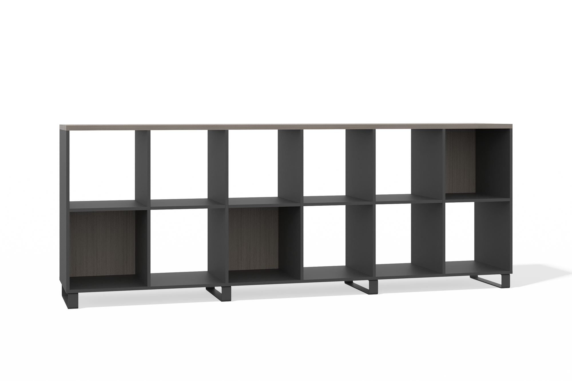 Стеллажная система Лебер на металлокаркасе 2х6 (Корпус А: файнлайн средне-серый, Корпус В: диамант серый, Фасад: файнлайн средне-серый, серый муар)