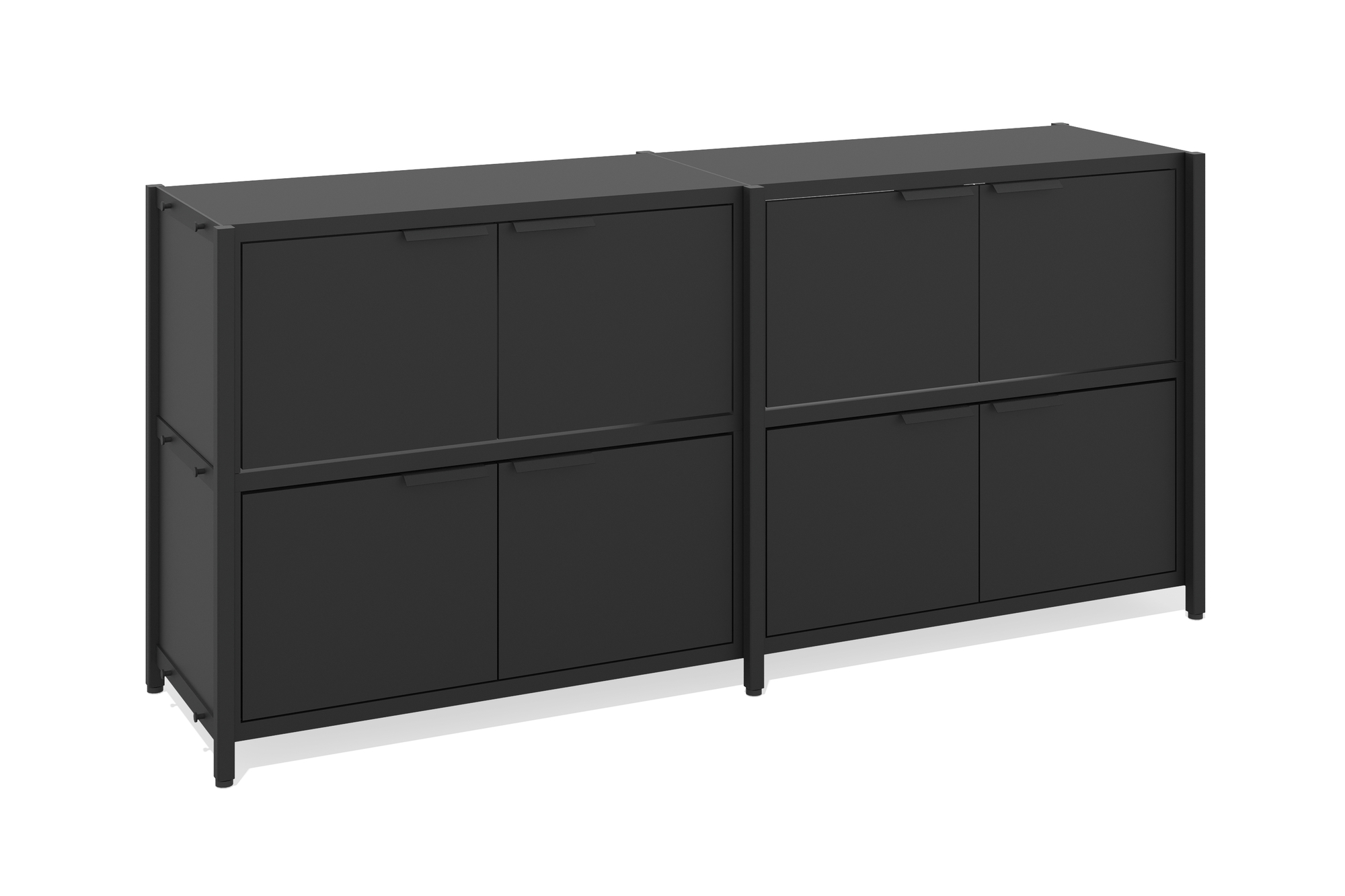 Стеллаж низкий 2 секции (Два уровня с дверцами, Фасад: черный графит, Корпус А: черный графит, черный муар)