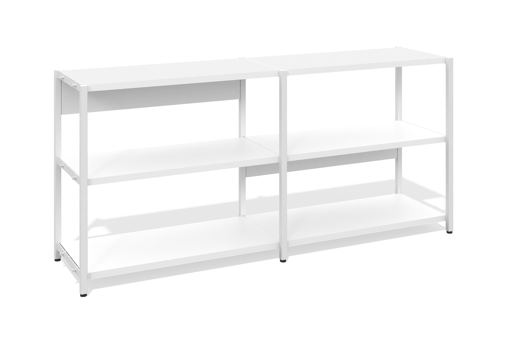 Стеллаж низкий 2 секции (Открытые полки, Фасад: белый премиум, Корпус А: белый премиум, белый муар)