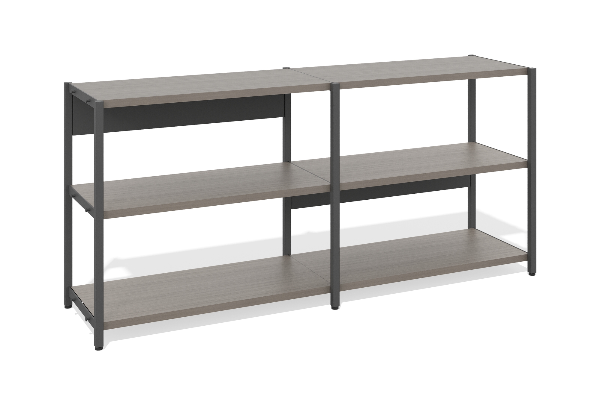 Стеллаж низкий 2 секции (Открытые полки, Фасад: файнлайн средне-серый, Корпус А: файнлайн средне-серый, серый муар)