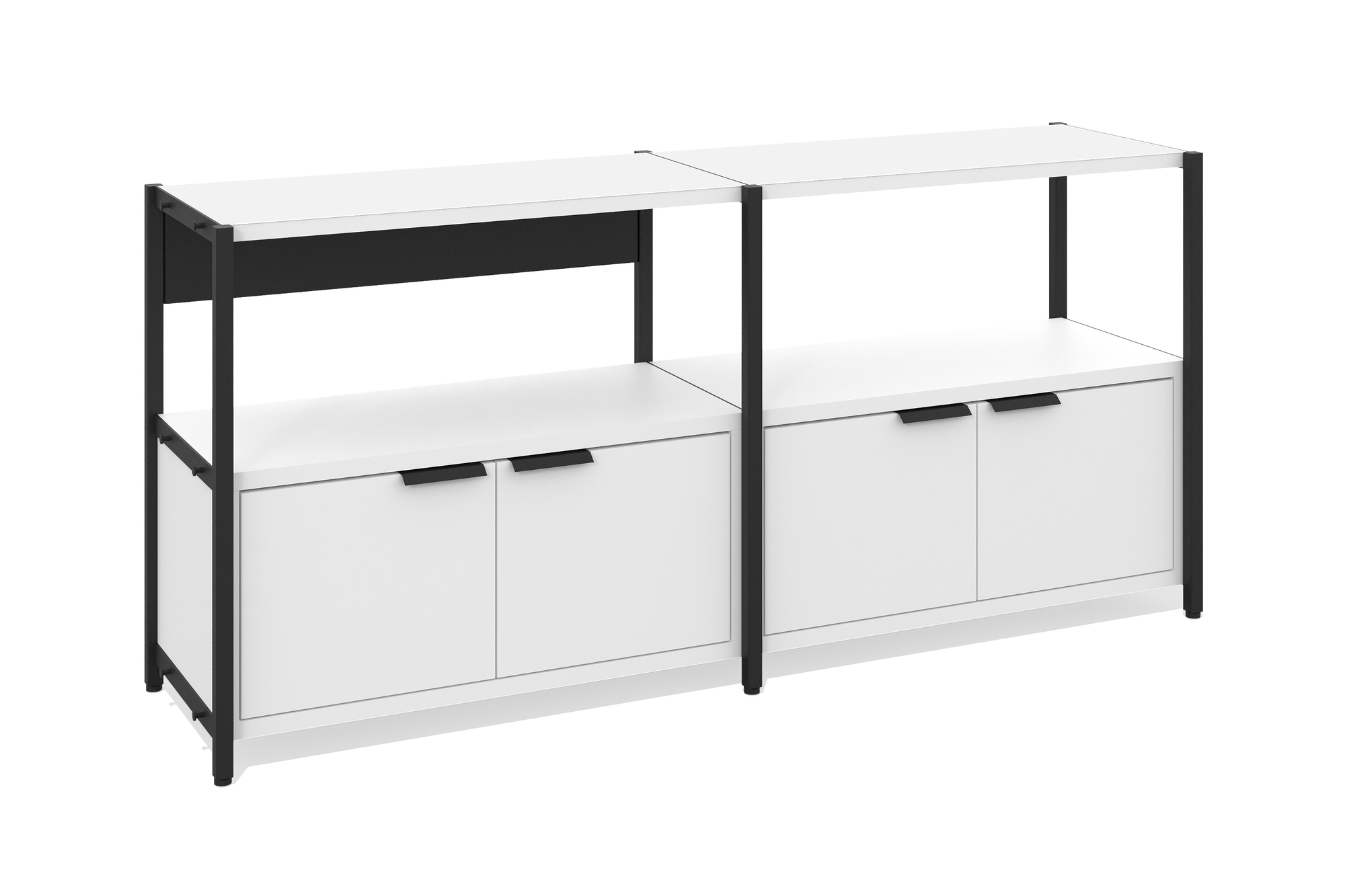 Стеллаж низкий 2 секции (Один уровень с дверцами, Фасад: белый премиум, Корпус А: белый премиум, черный муар)
