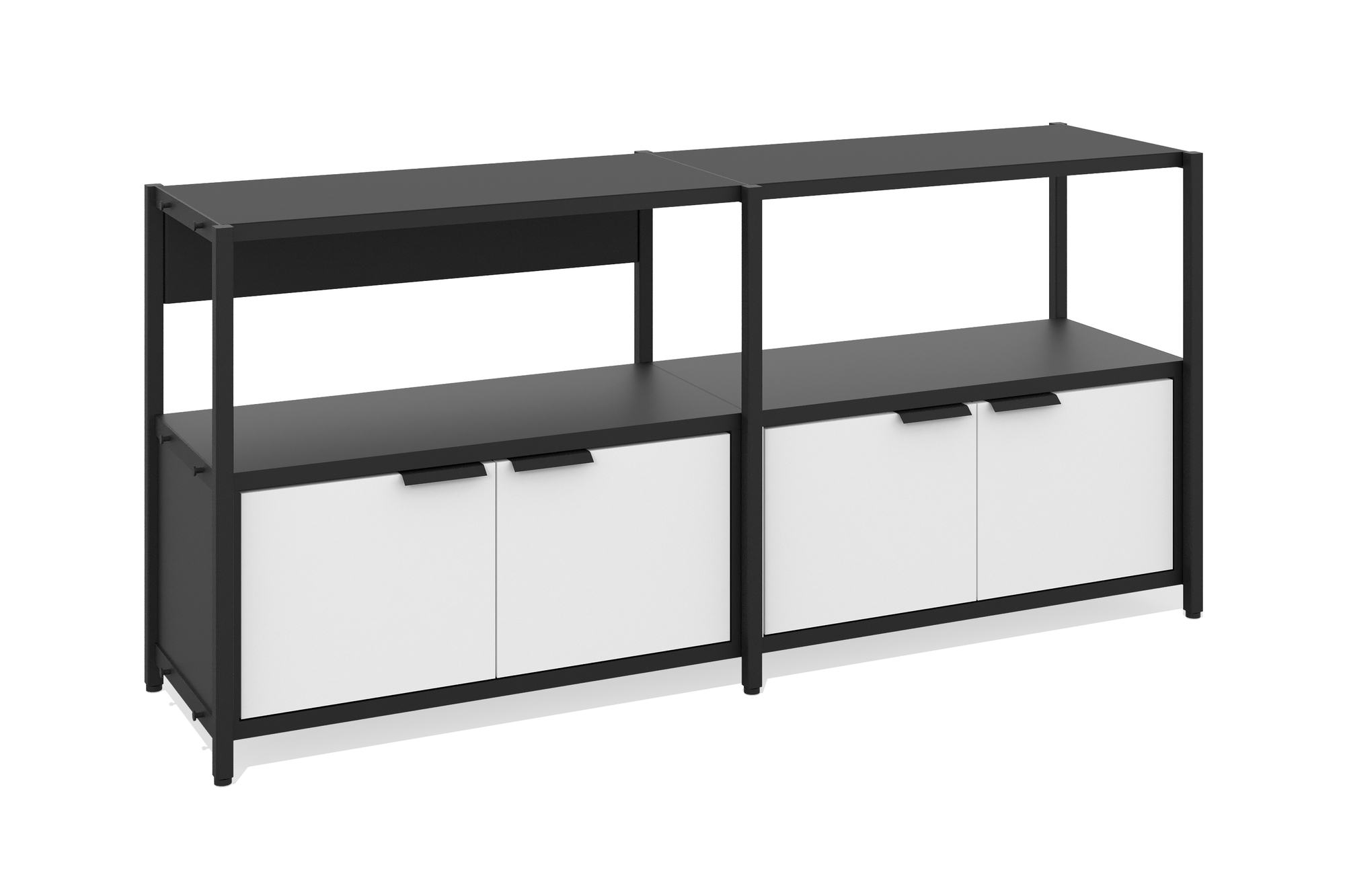 Стеллаж низкий 2 секции (Один уровень с дверцами, Фасад: белый премиум, Корпус А: черный графит, черный муар)