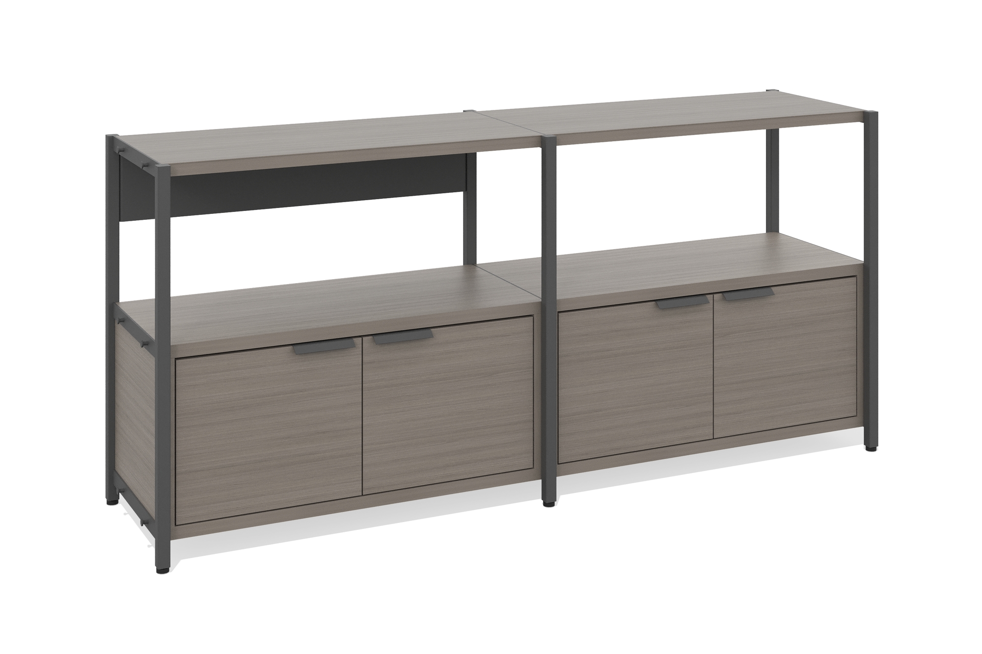 Стеллаж низкий 2 секции (Один уровень с дверцами, Фасад: файнлайн средне-серый, Корпус А: файнлайн средне-серый, серый муар)