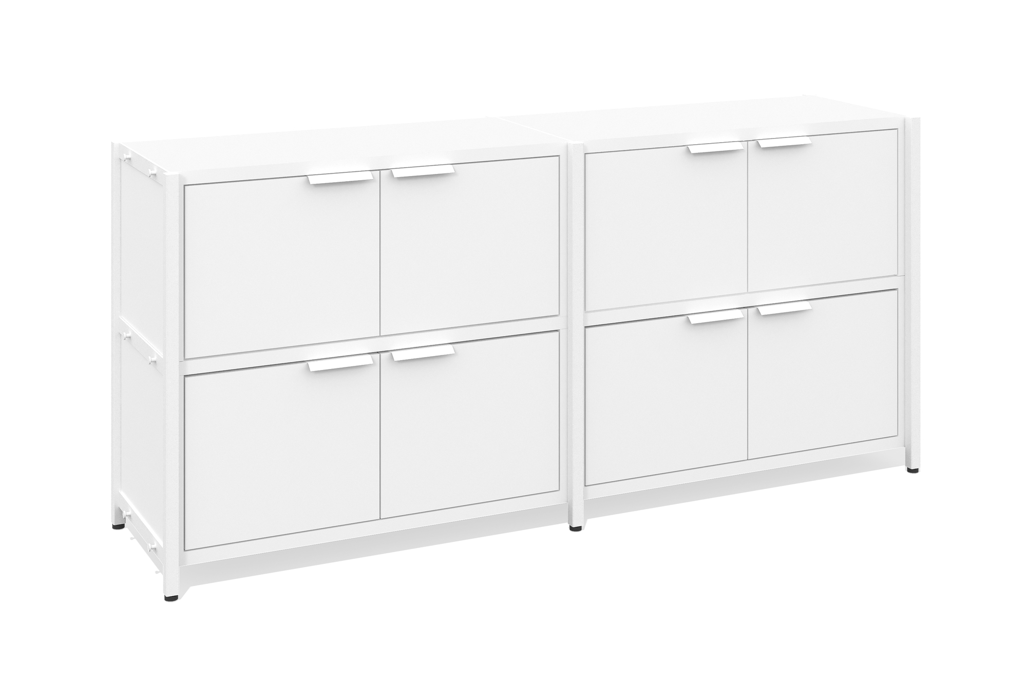 Стеллаж низкий 2 секции (Два уровня с дверцами, Фасад: белый премиум, Корпус А: белый премиум, белый муар)