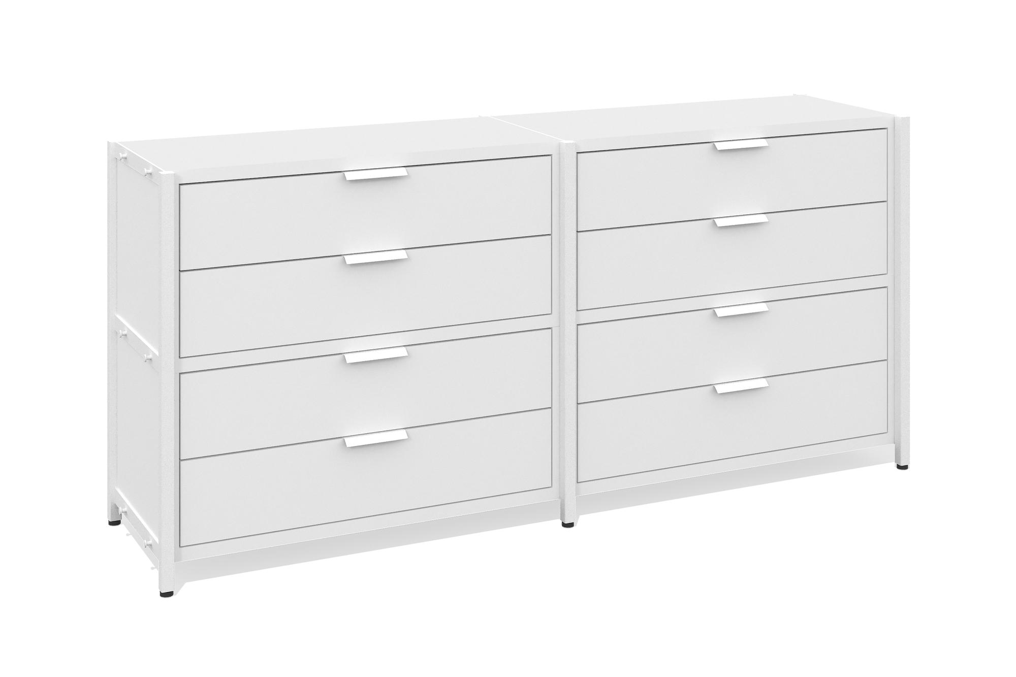 Стеллаж низкий 2 секции (Два уровня с ящиками, Фасад: белый премиум, Корпус А: белый премиум, белый муар)