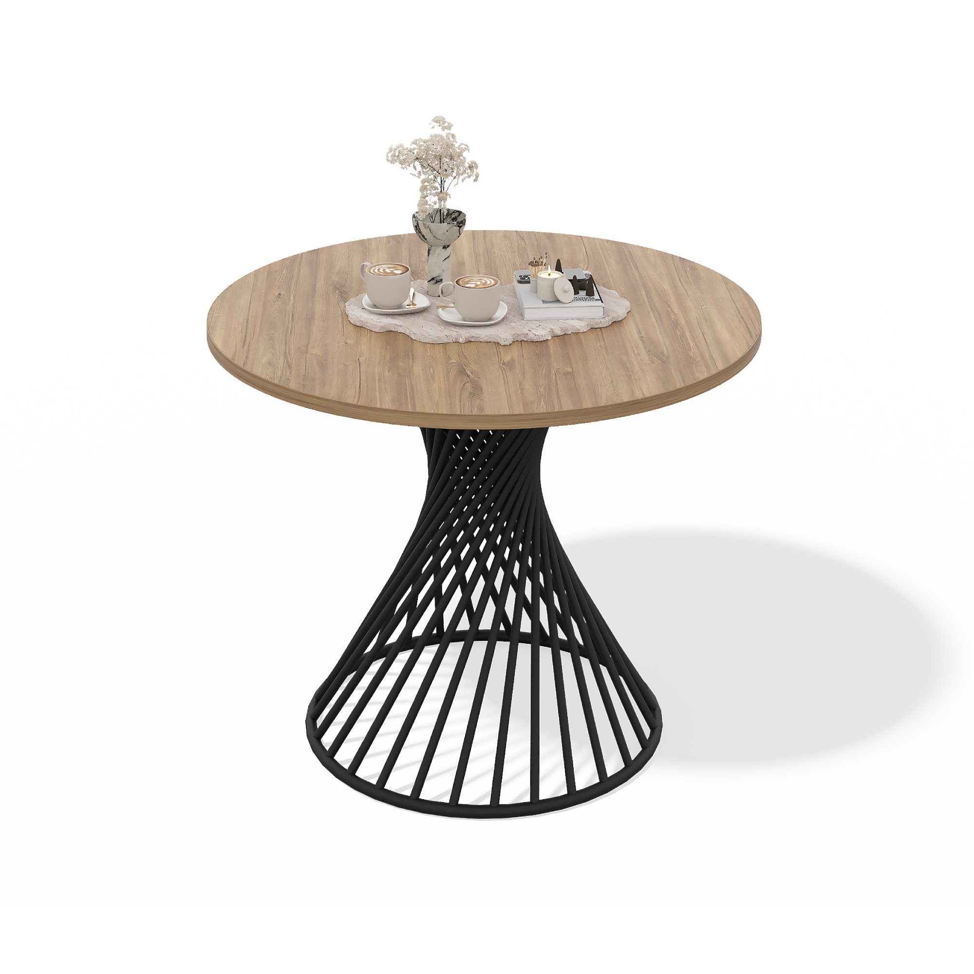 Стол обеденный круглый дизайнерский Рейкьявик (дуб канзас, черный муар, 16, 1300)