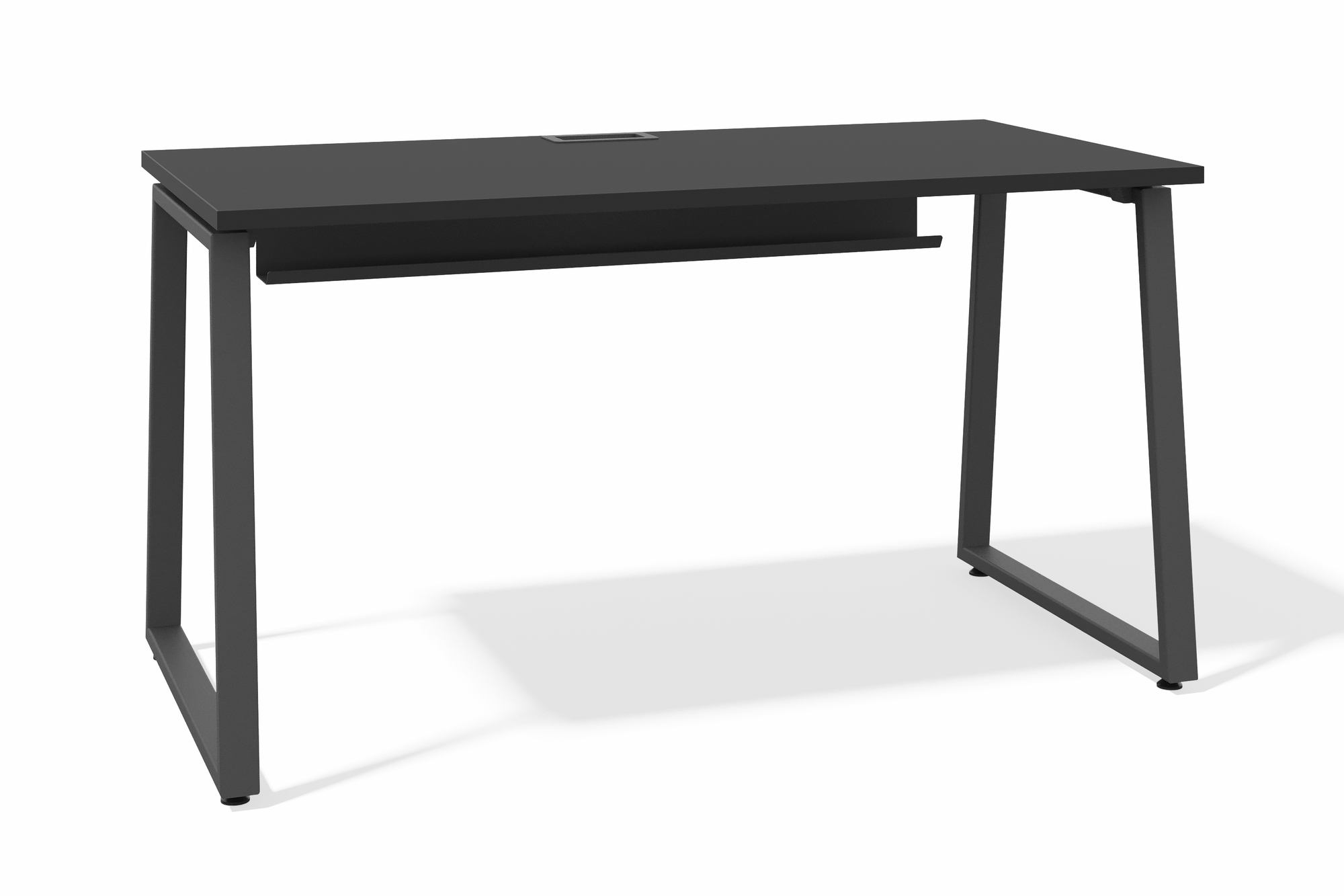 Стол офисный модульный А-образное подстолье (черный графит, серый муар, 60x30, С лючком и с креплениями, 2000x600)