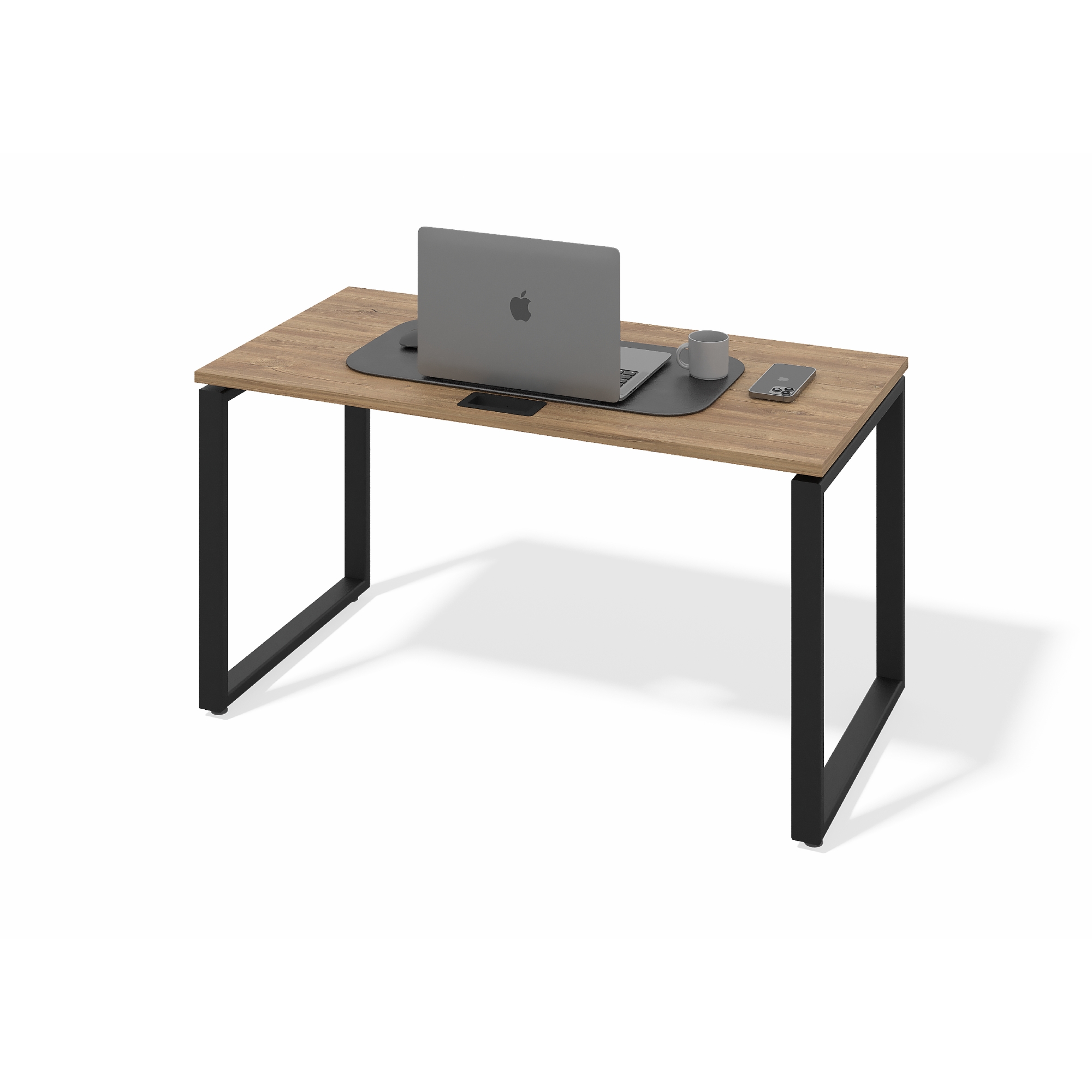 Стол офисный модульный О-образное подстолье (дуб канзас, черный муар, 50x25, Без лючка и с креплениями, 1200x800)