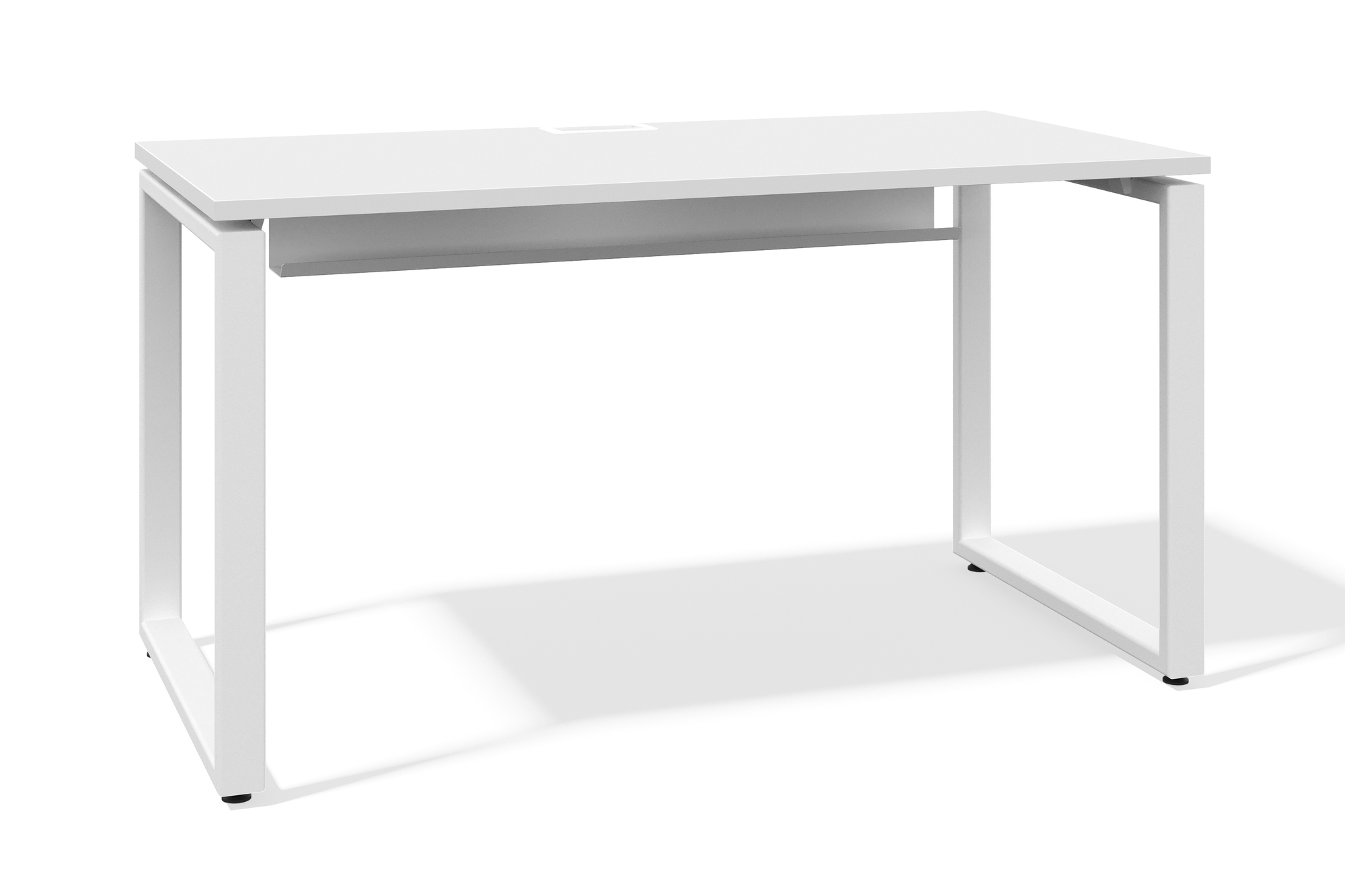 Стол офисный модульный О-образное подстолье (белый премиум, белый муар, 50x25, С лючком и с креплениями, 2000x700)