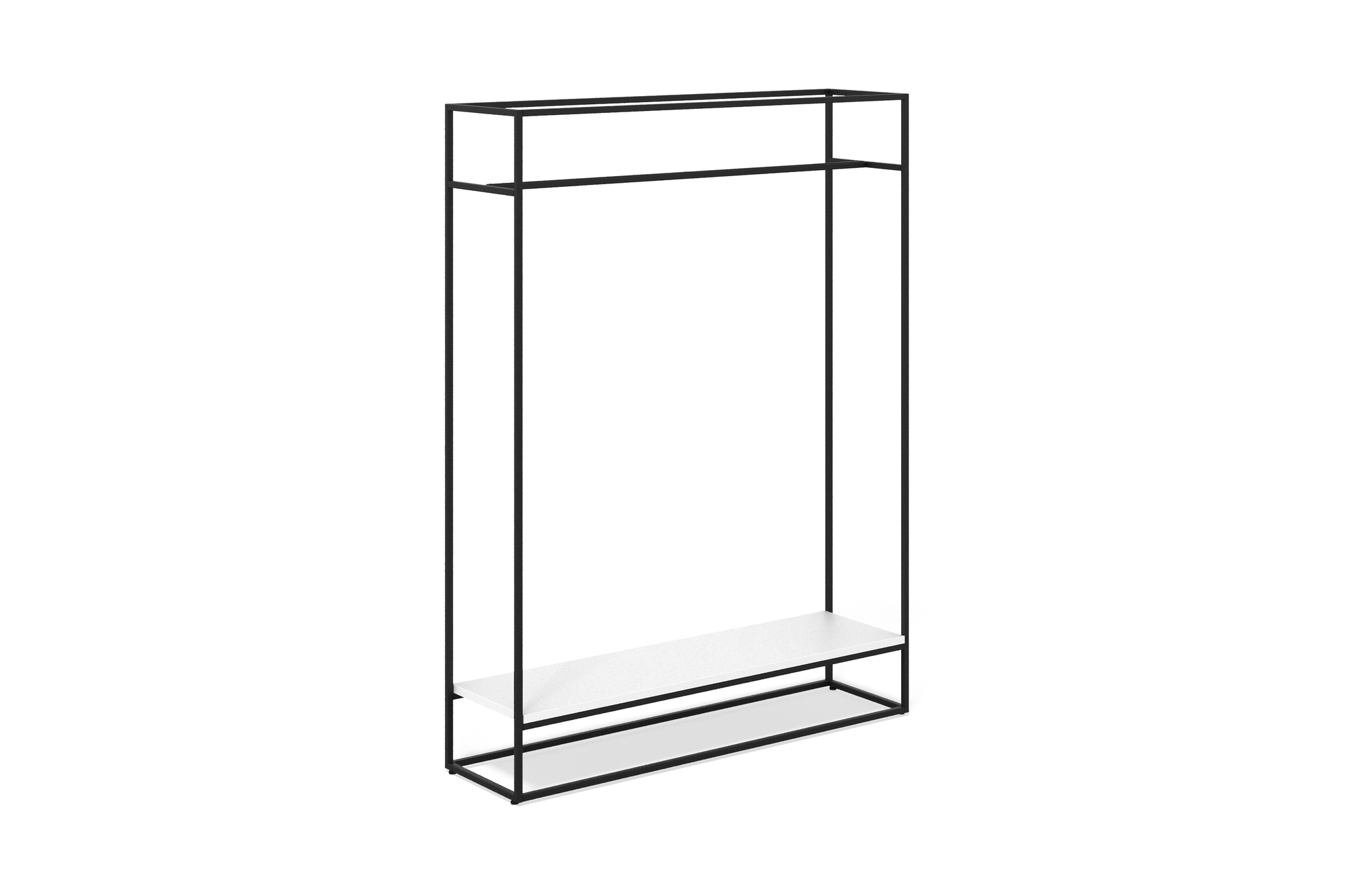 Стеллаж гардеробный с полкой для обуви. Труба для вешалок выполнена из профиля 20х20 с накладкой из нержавеющей стали.