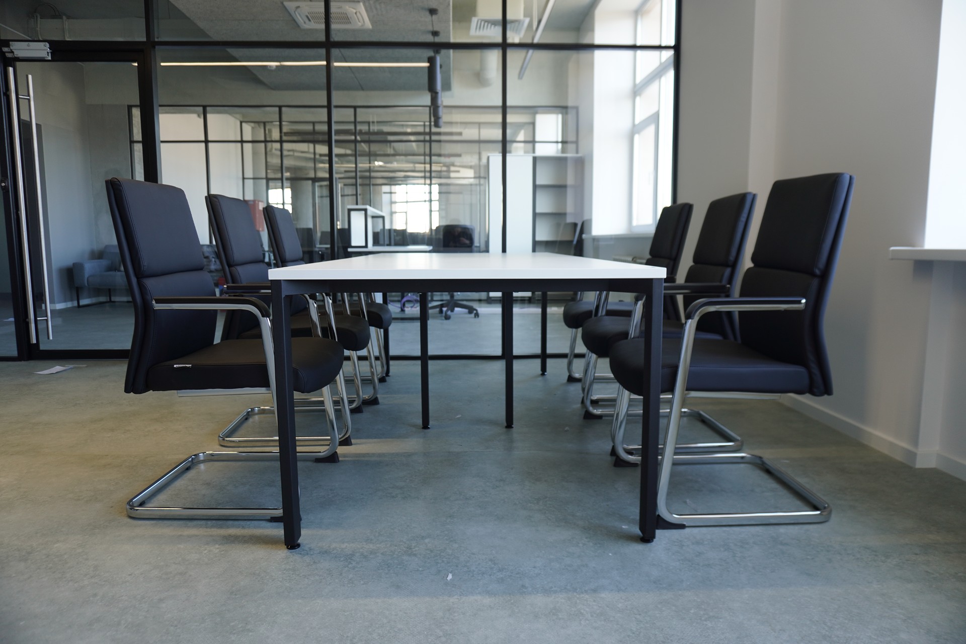 Решение: мы разработали мебель, которая позволяет легко сочетать разные сценарии работы. Бенч-системы обеспечили удобные рабочие места для индивидуальных задач и при этом сохранили открытость пространства. Зона ресепшн задала единый стиль и аккуратный визуальный акцент при входе. Для командных встреч и летучек был создан переговорный стол, а мобильные узкие тумбы и шкафы-купе помогли организовать хранение. Стеллажная система дополнила интерьер, сохранив лёгкость и функциональность. Вся мебель выполнена в чёрно-белой гамме, что подчёркивает современный характер офиса.