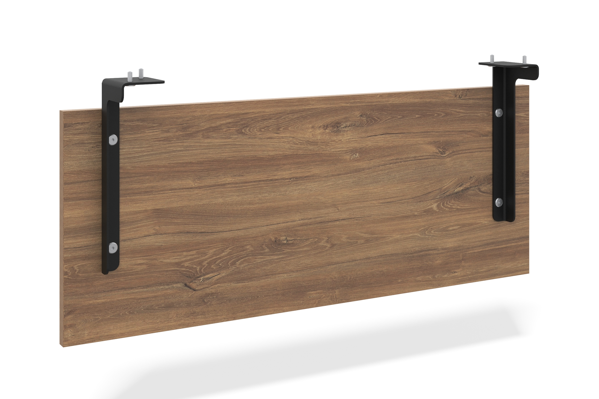 Экран для ног устанавливается на металлические кронштейны. Доступен в нескольких размерах в зависимости от длины столешницы. Панель экрана выполнена из ЛДСП. Кронштейны из кострукционной стали с порошковой окраской. Подходит к стандартной серии офисных столов Лебер.