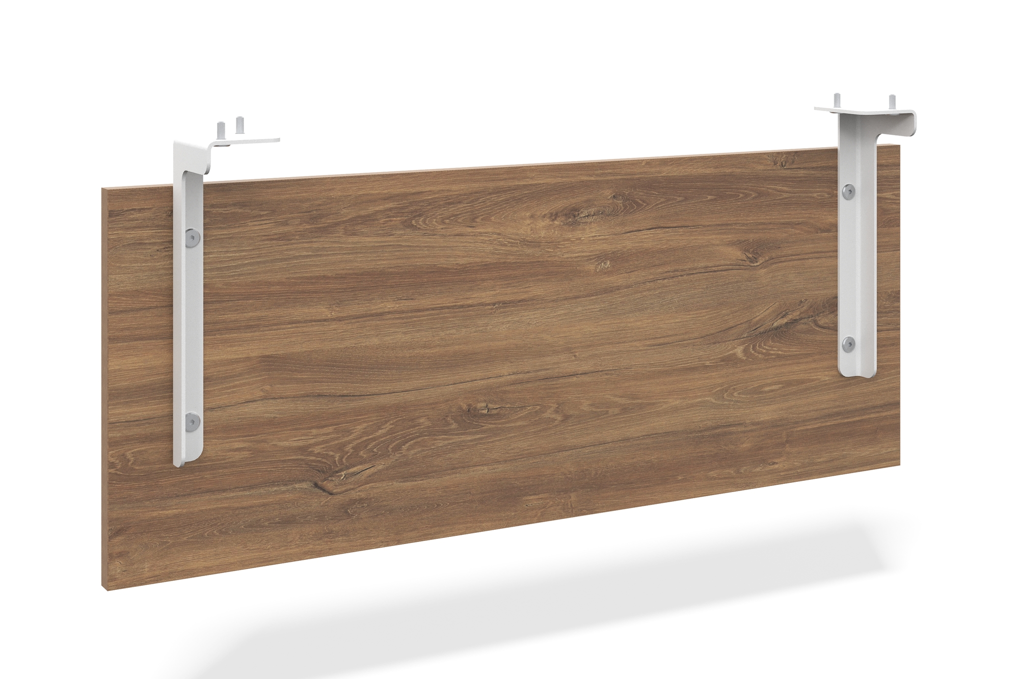 Экран для ног устанавливается на металлические кронштейны. Доступен в нескольких размерах в зависимости от длины столешницы. Панель экрана выполнена из ЛДСП. Кронштейны из кострукционной стали с порошковой окраской. Подходит к стандартной серии офисных столов Лебер.