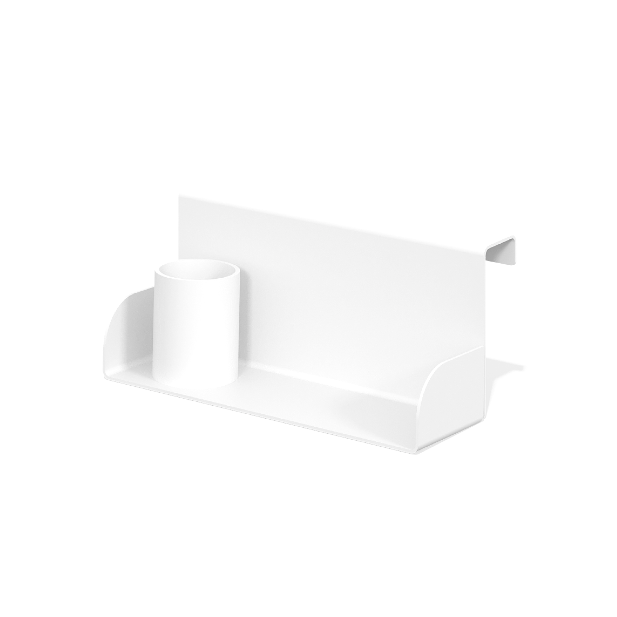 Компактное и функциональное решение для организации пространства. Подвесная полка со встроенным стаканом подходит для хранения канцелярских принадлежностей, мелочей и аксессуаров.