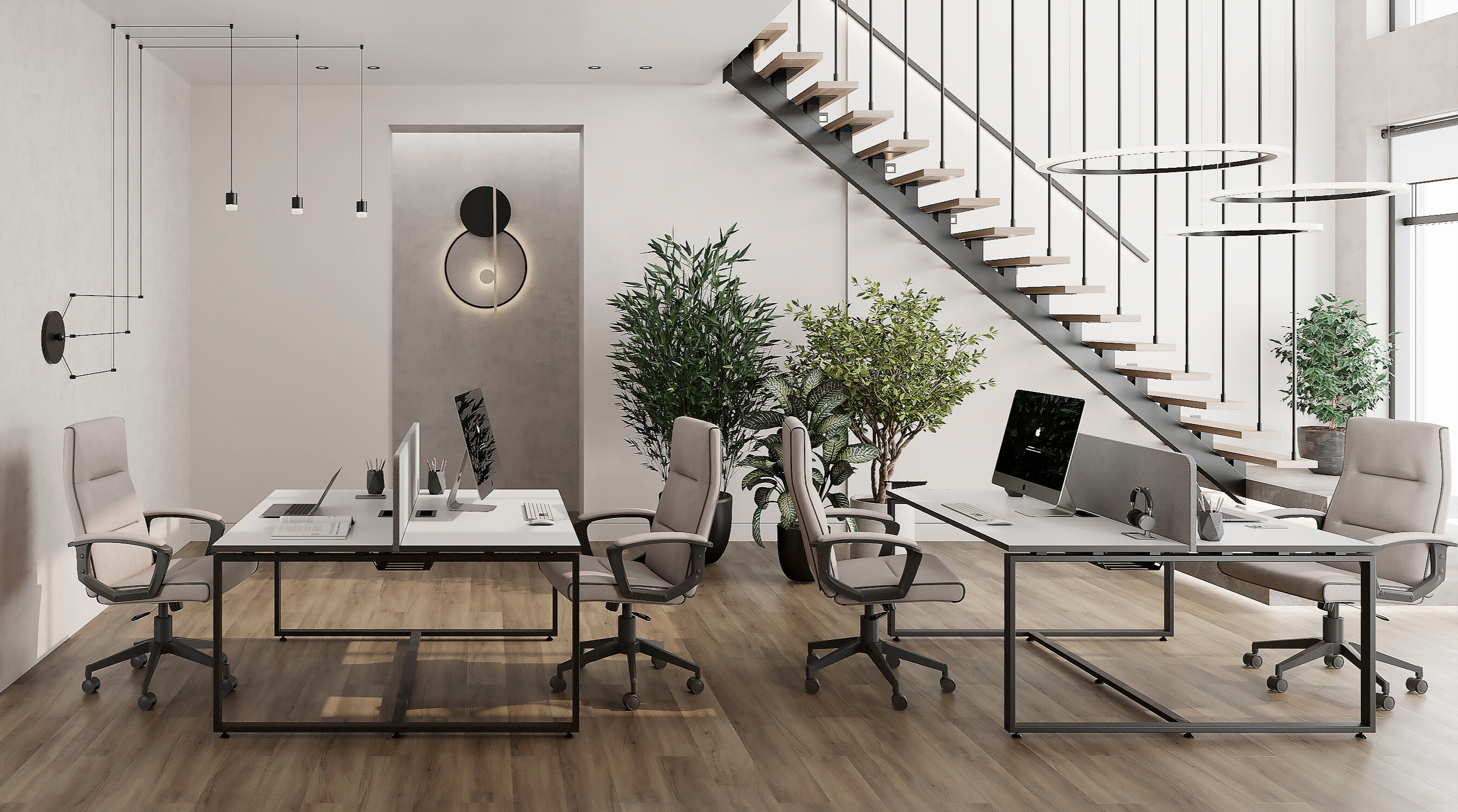 Бенч-система для офиса на 2 рабочих места. Металлический каркас обеспечивает необходимую прочность и долговечность. Благодаря особому порошковому покрытию металла, его поверхность не подвержена царапинам. Каждое рабочее место можно оснастить необходимым дополнительным оборудованием: кабель-каналами для проводов, ящиками для хранения документов, полками, лючками для проводов, а также различными аксессуарами: креплениями, зажимами, крючками для сумок, подкатными платформами для системного блока ПК.