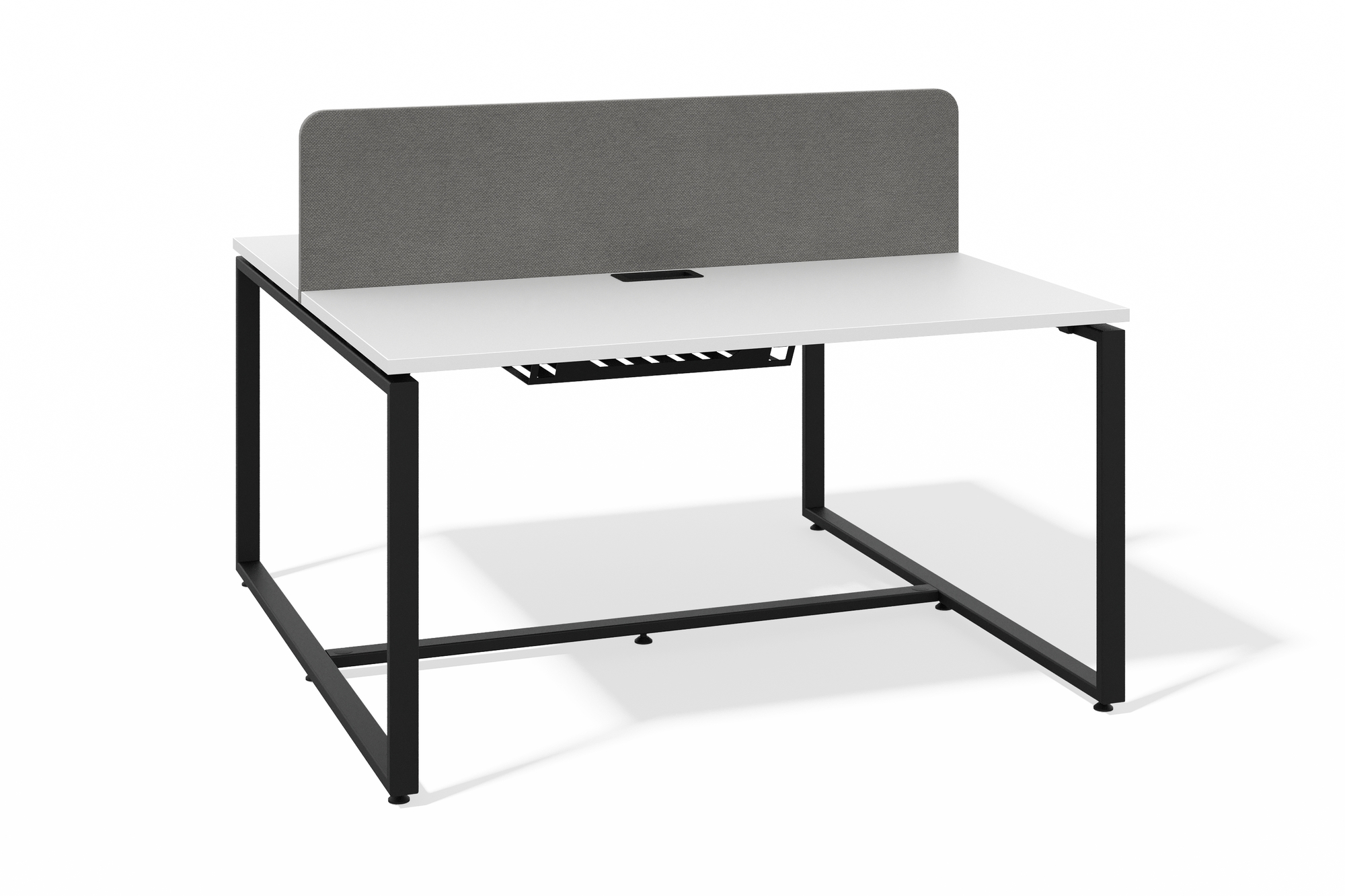Бенч система на 2 рабочих места О-образное подстолье (белый премиум, 2000x600, черный муар, 40x40)