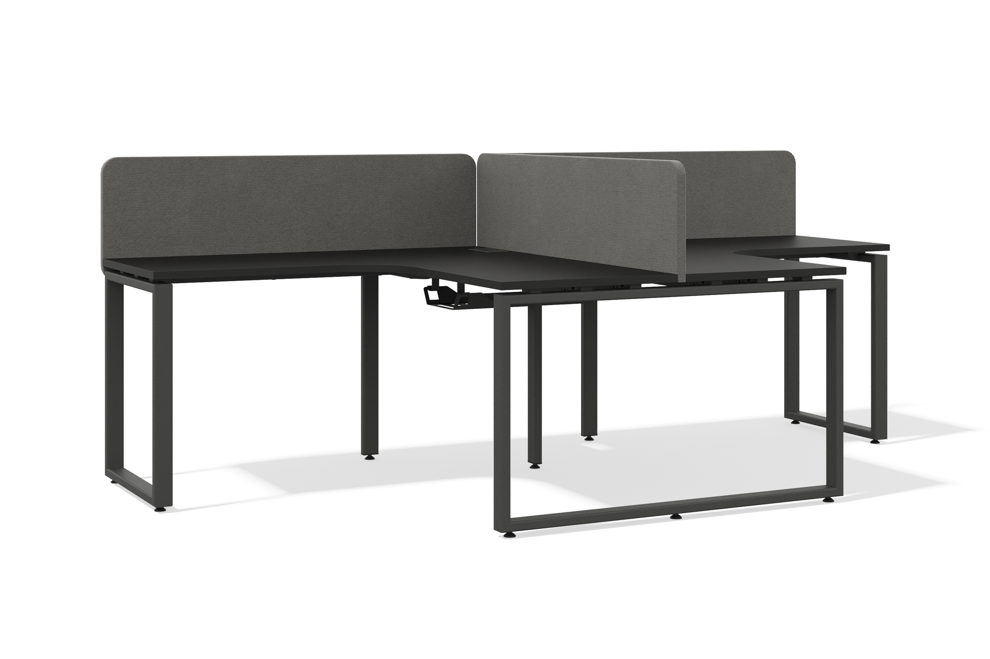 Бенч-система угловая модульная на 2 рабочих места с О-образным каркасом (черный графит, серый муар, 1600x700, 60x30)