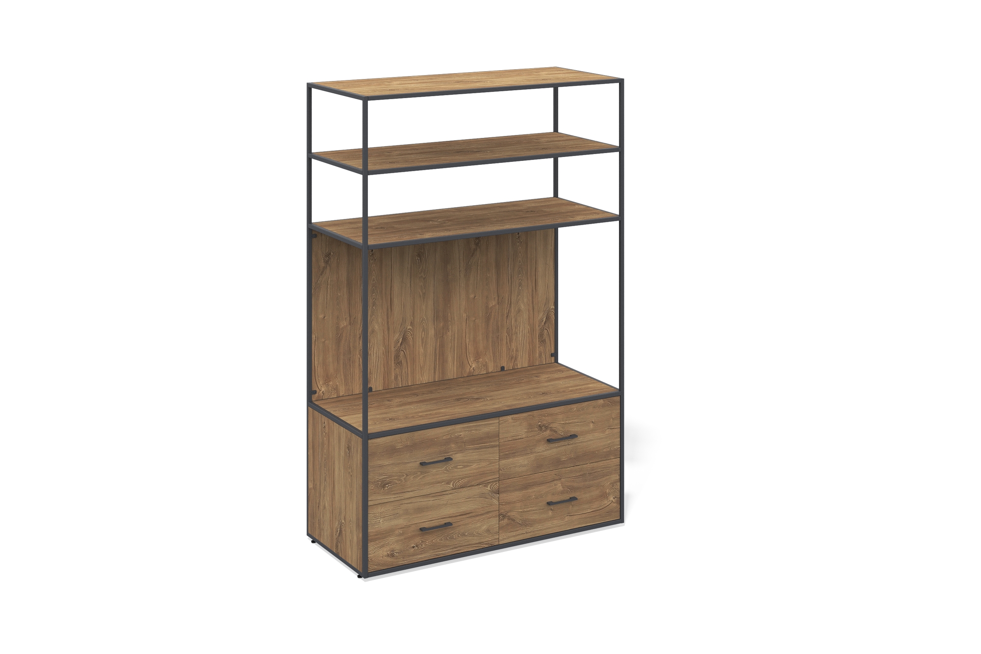 Шкаф-органайзер — функциональное решение для организации рабочего пространства. Удачное сочетание открытых полок и вместительных выдвижных ящиков.