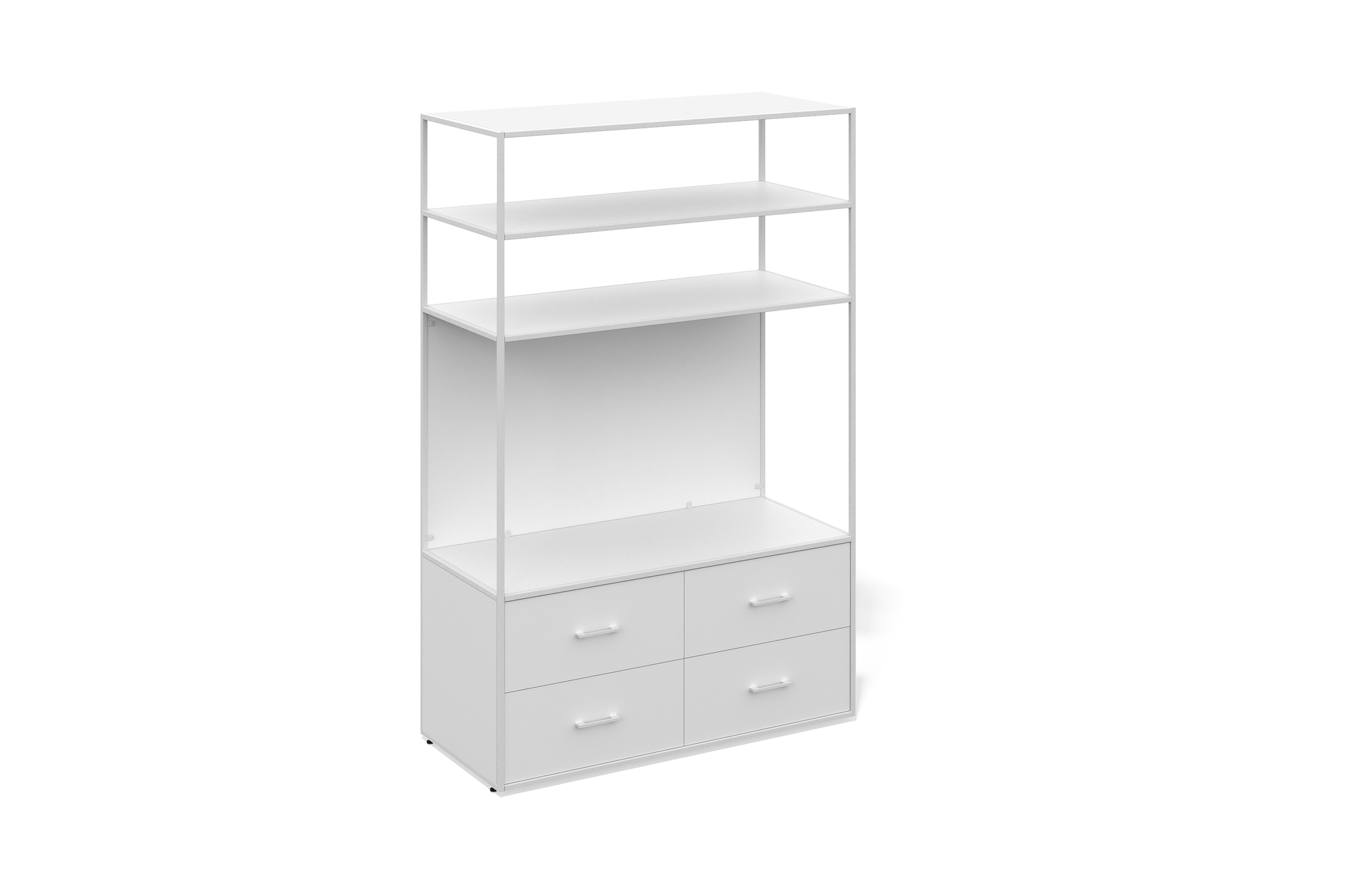 Шкаф-органайзер — функциональное решение для организации рабочего пространства. Удачное сочетание открытых полок и вместительных выдвижных ящиков.