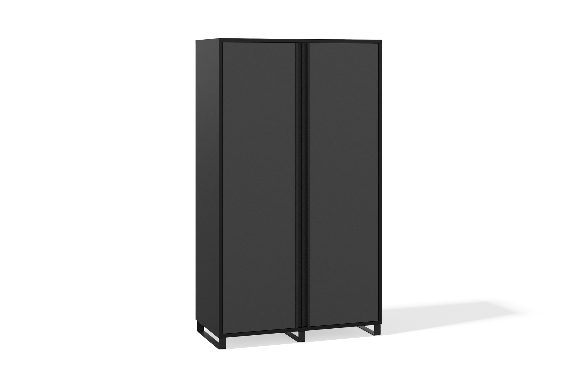 Вместительный шкаф для одежды с распашными дверцами подойдёт для хранения даже самого большого гардероба. Внутри расположены две прочные металлические трубы для вешалок, что позволяет удобно разместить одежду на плечиках. Стильные металлические опоры придают шкафу визуальную лёгкость, дополняя его лаконичный дизайн.