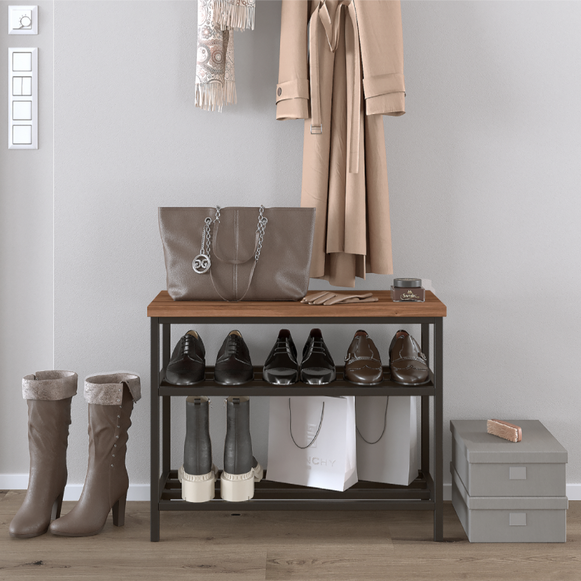 Этажерка для обуви с металлическим каркасом - это идеальное решение для любителей лофт-стиля! Она не только позволяет эффективно хранить обувь, но и станет стильным дополнением к любому интерьеру.