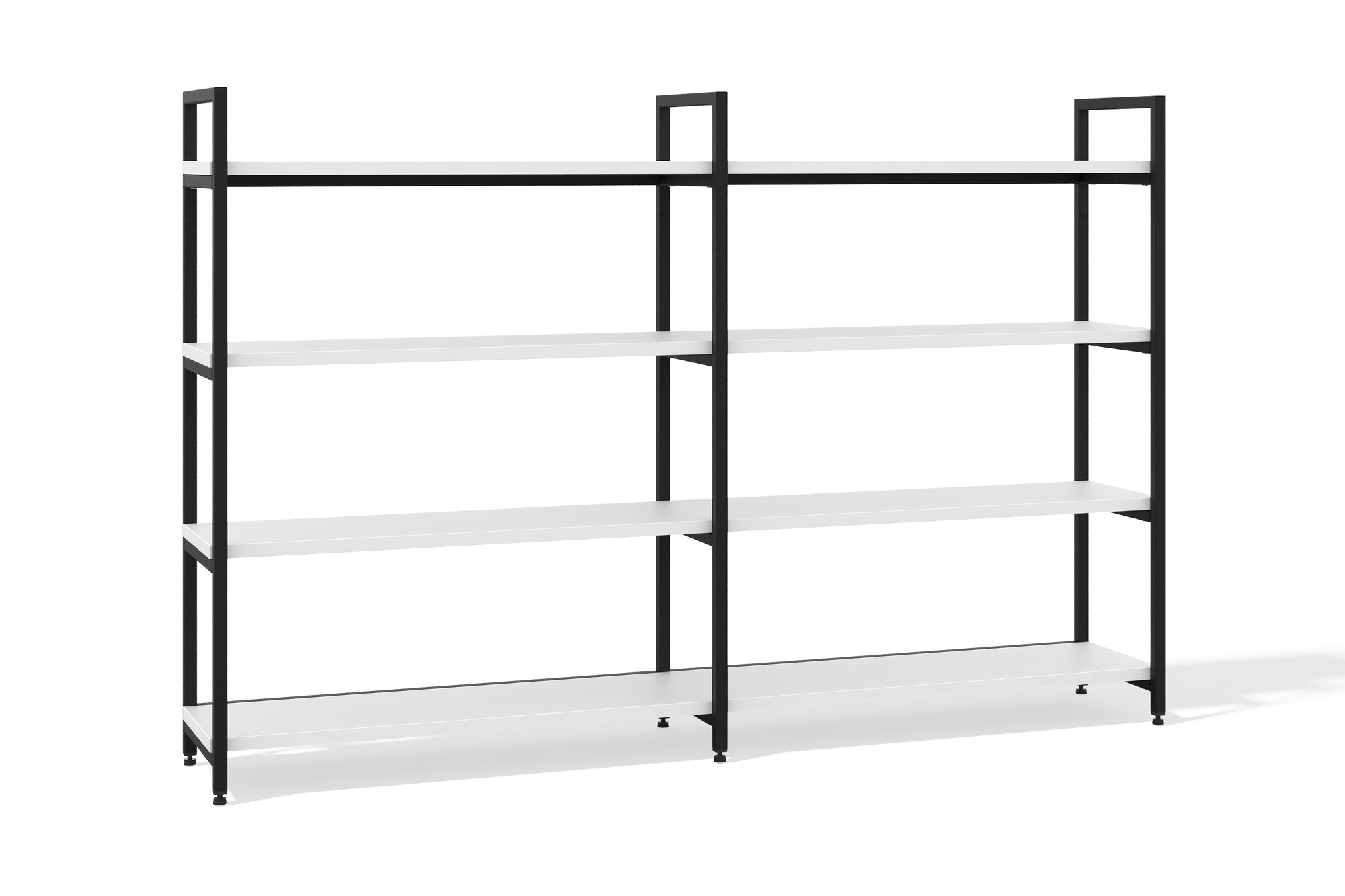 Стеллаж модульный 4 полки со скобой (белый премиум, черный муар, 2000x500x1300)