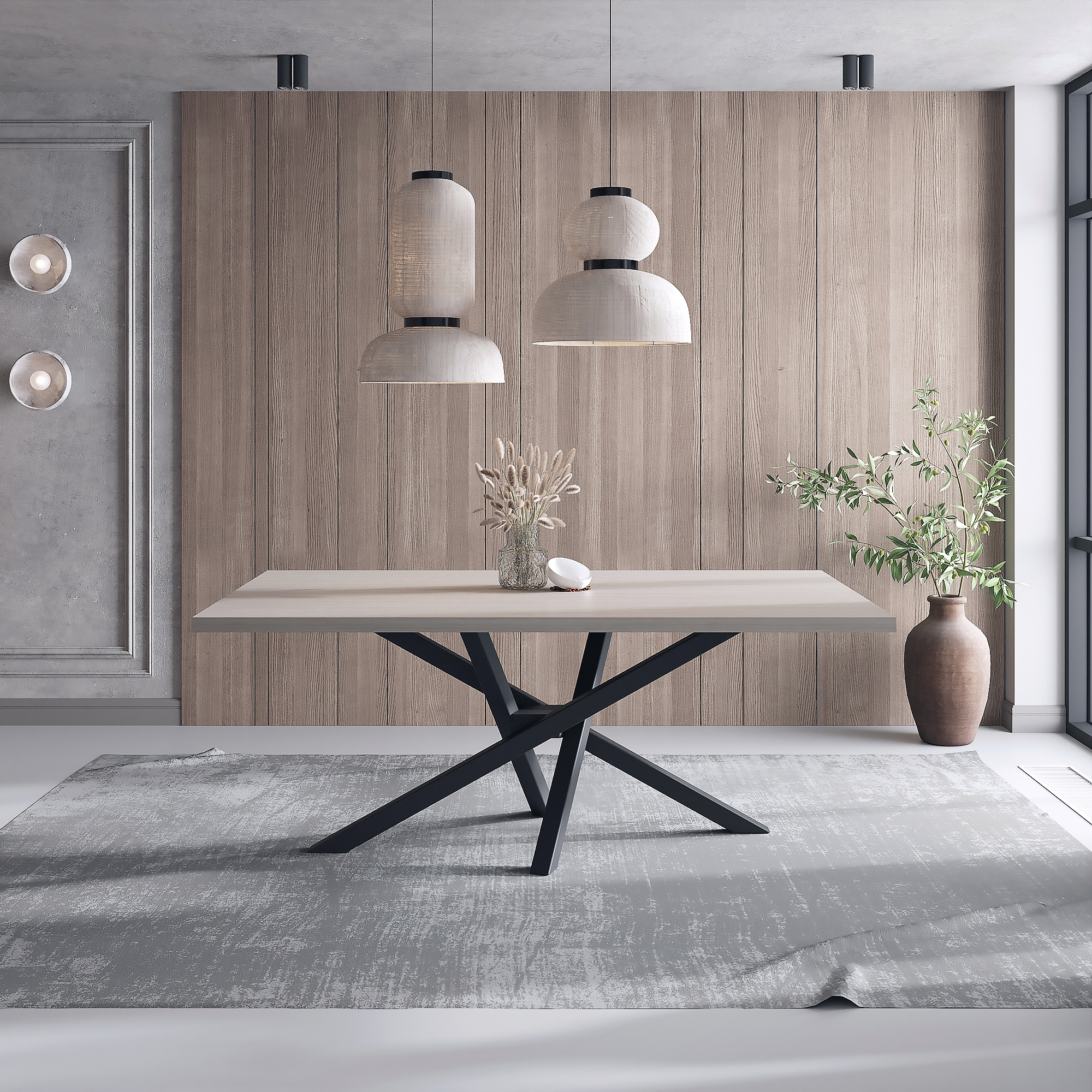 Стол обеденный домашний (шпон натуральный дуб, белый муар)