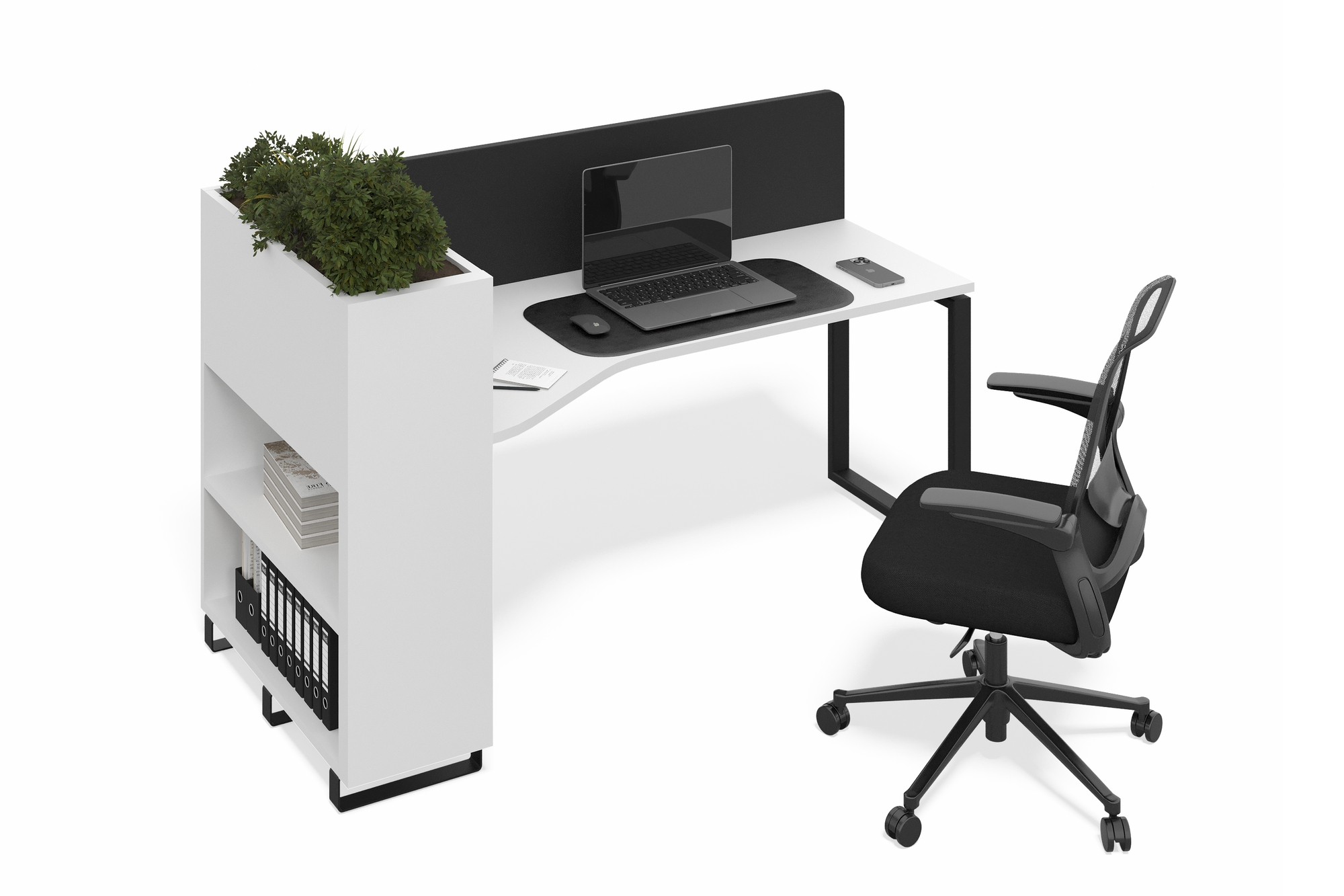 Стол офисный с кашпо (белый премиум, Фасад: белый премиум, белый премиум, черный муар, Кашпо без ящиков, Правая)