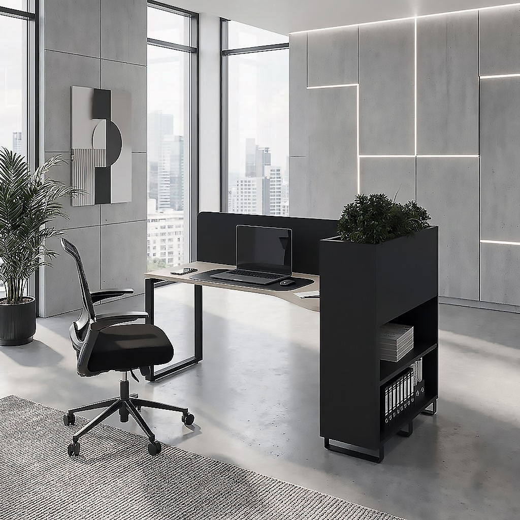 Стол офисный с кашпо (шпон натуральный дуб, Фасад: натуральный шпон (дуб), черный муар, Кашпо без ящиков, Левая)