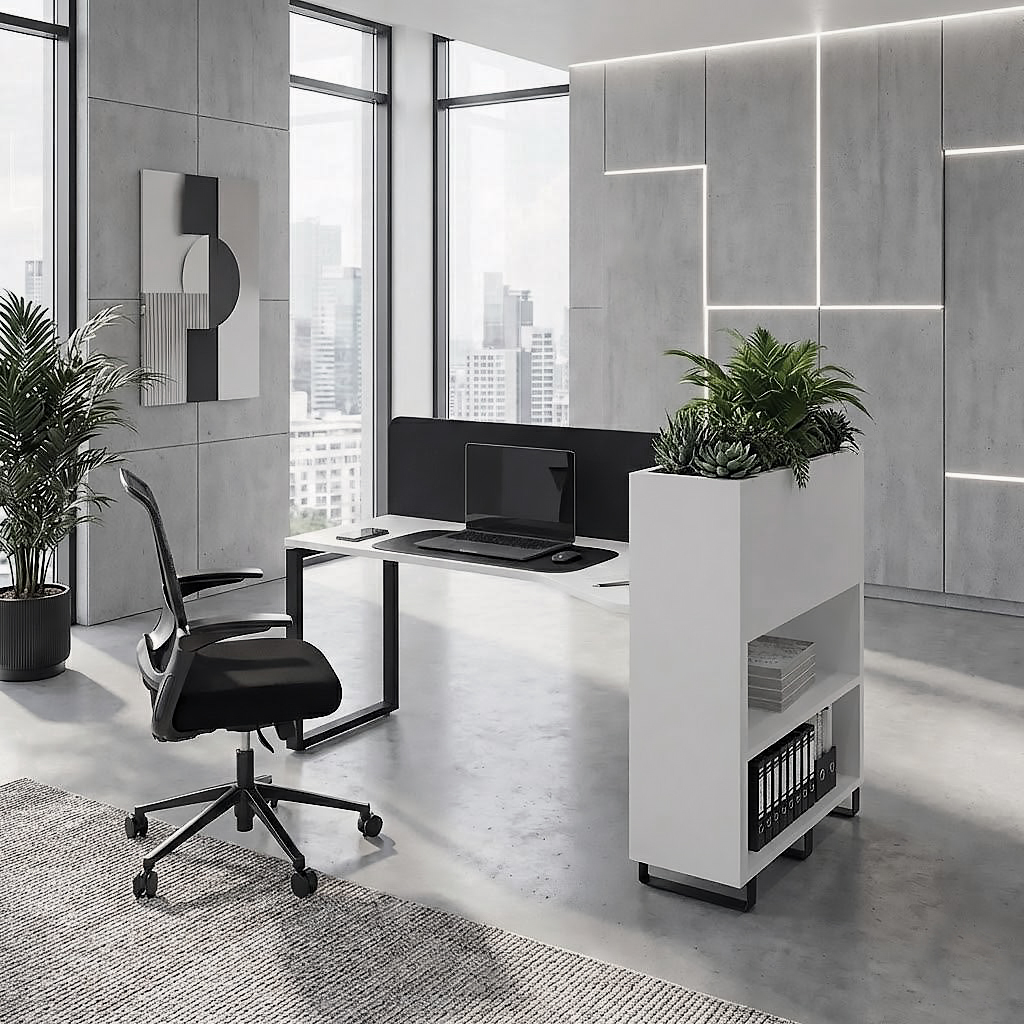 Многофункциональное рабочее место для организации современного офисного пространства в стиле лофт. Конструкция объединяет рабочий стол и приставную тумбу-органайзер.