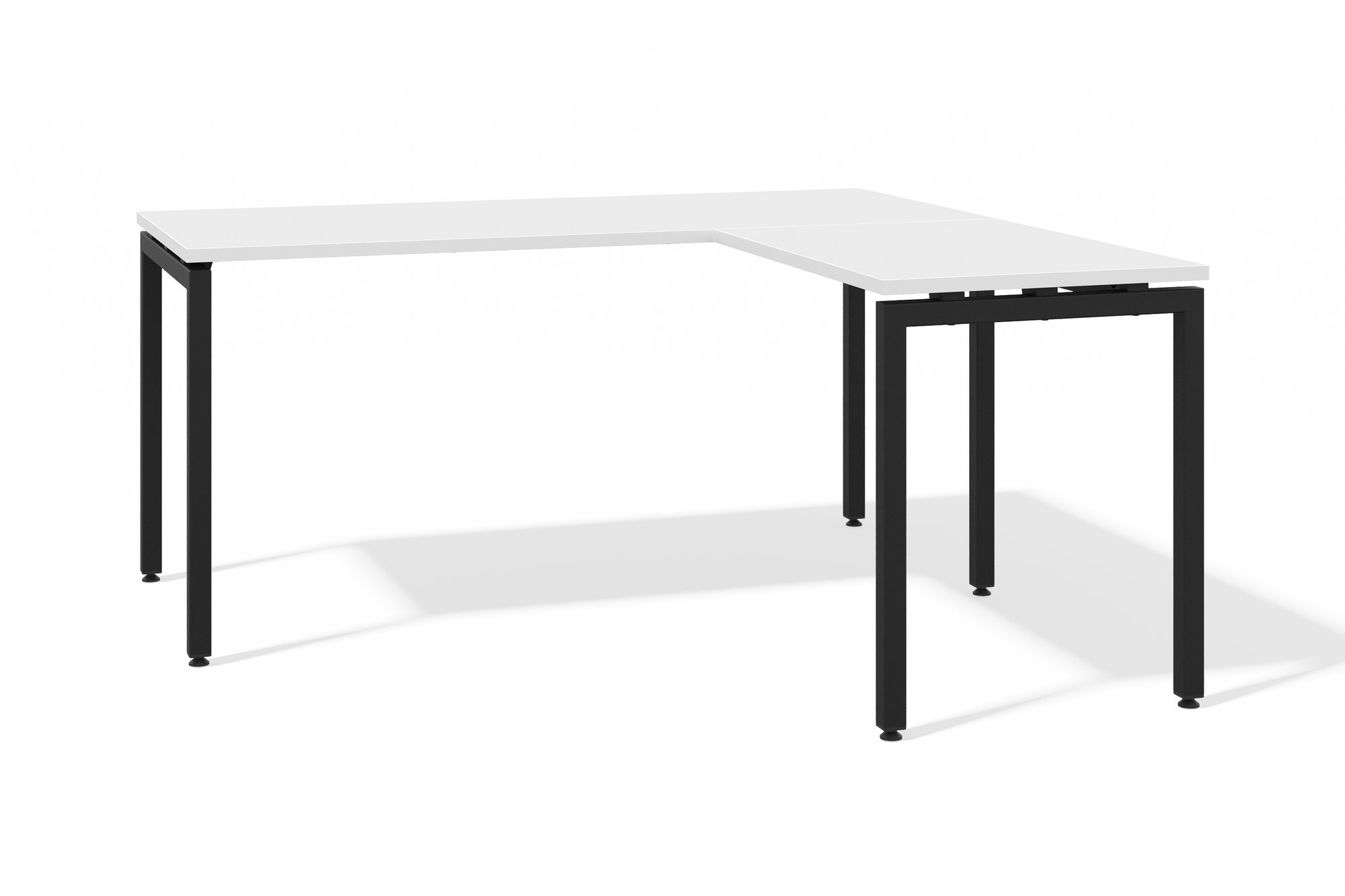 Угловой офисный стол П-образное подстолье (1,5мм) (Без лючка и без креплений, белый премиум, черный муар, 1600x700, 800x600, 40x40)