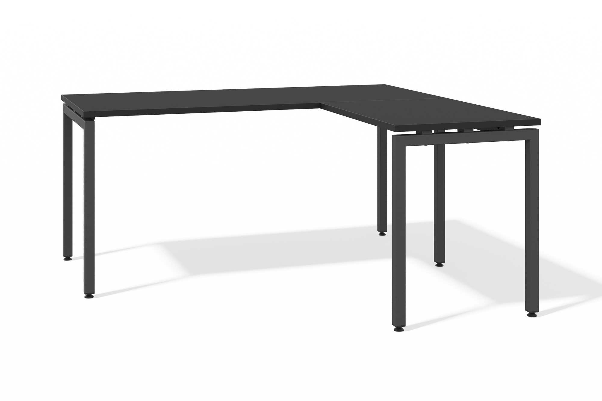 Угловой офисный стол П-образное подстолье (1,5мм) (Без лючка и без креплений, черный графит, серый муар, 1600x700, 800x600, 40x40)