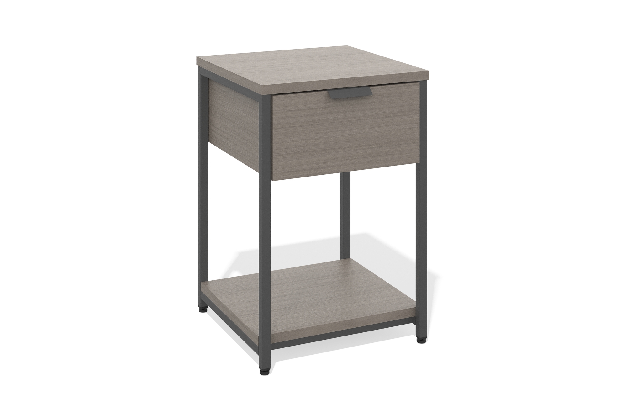 Глубокий выдвижной ящик оснащен надежной фурнитурой для плавного открывания. Верхняя крышка выдерживает нагрузку, достаточную для офисного принтера и других аксессуаров. Нижняя полка создает дополнительное пространство для хранения, сохраняя ощущение "воздуха" в комнате.