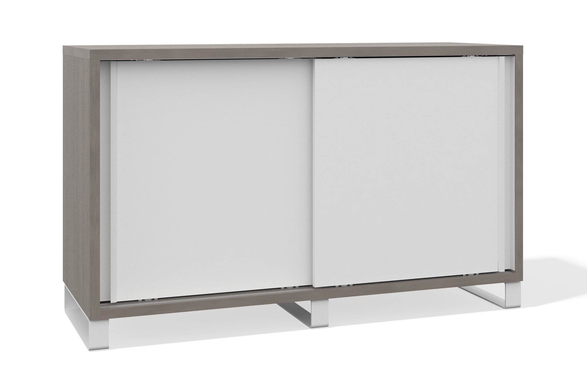 Тумба низкая 450x1230x750 (раздвижные двери) (Фасад: белый премиум, Корпус А: файнлайн средне-серый, Корпус В: файнлайн средне-серый, белый муар)