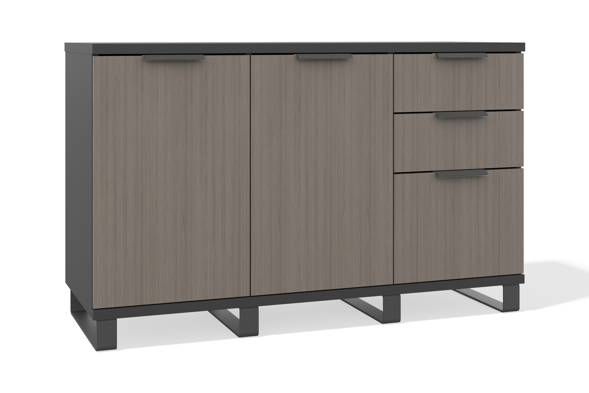 Универсальная тумба с тремя выдвижными ящиками и двумя высокими отсеками с распашными дверцами обеспечивает удобное хранение и порядок в пространстве. Конструкция на прочном металлическом каркасе. Выполнена из высококачественных материалов. Лаконичный дизайн делает её подходящей как для офиса, так и для дома.