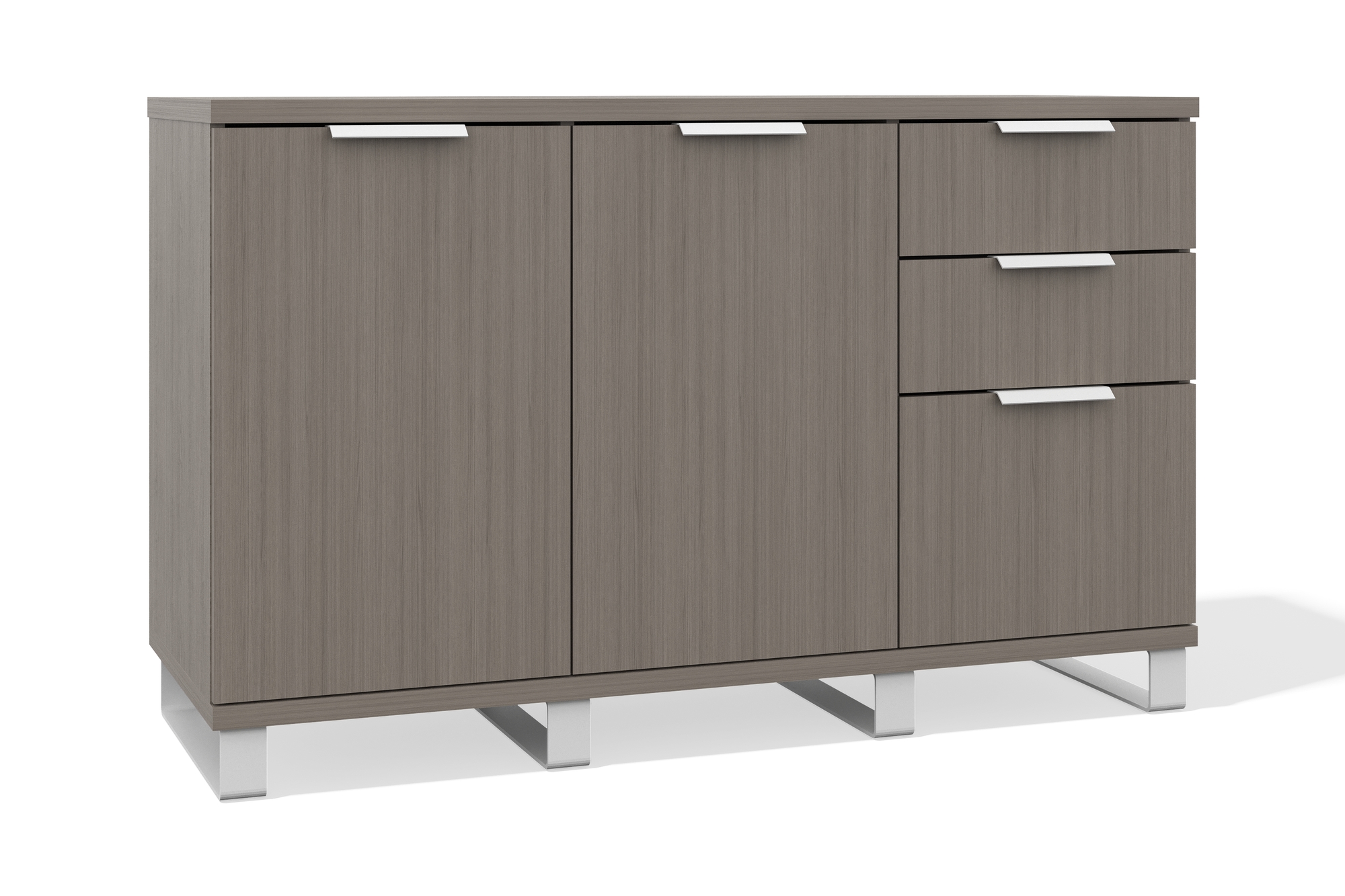 Универсальная тумба с тремя выдвижными ящиками и двумя высокими отсеками с распашными дверцами обеспечивает удобное хранение и порядок в пространстве. Конструкция на прочном металлическом каркасе. Выполнена из высококачественных материалов. Лаконичный дизайн делает её подходящей как для офиса, так и для дома.