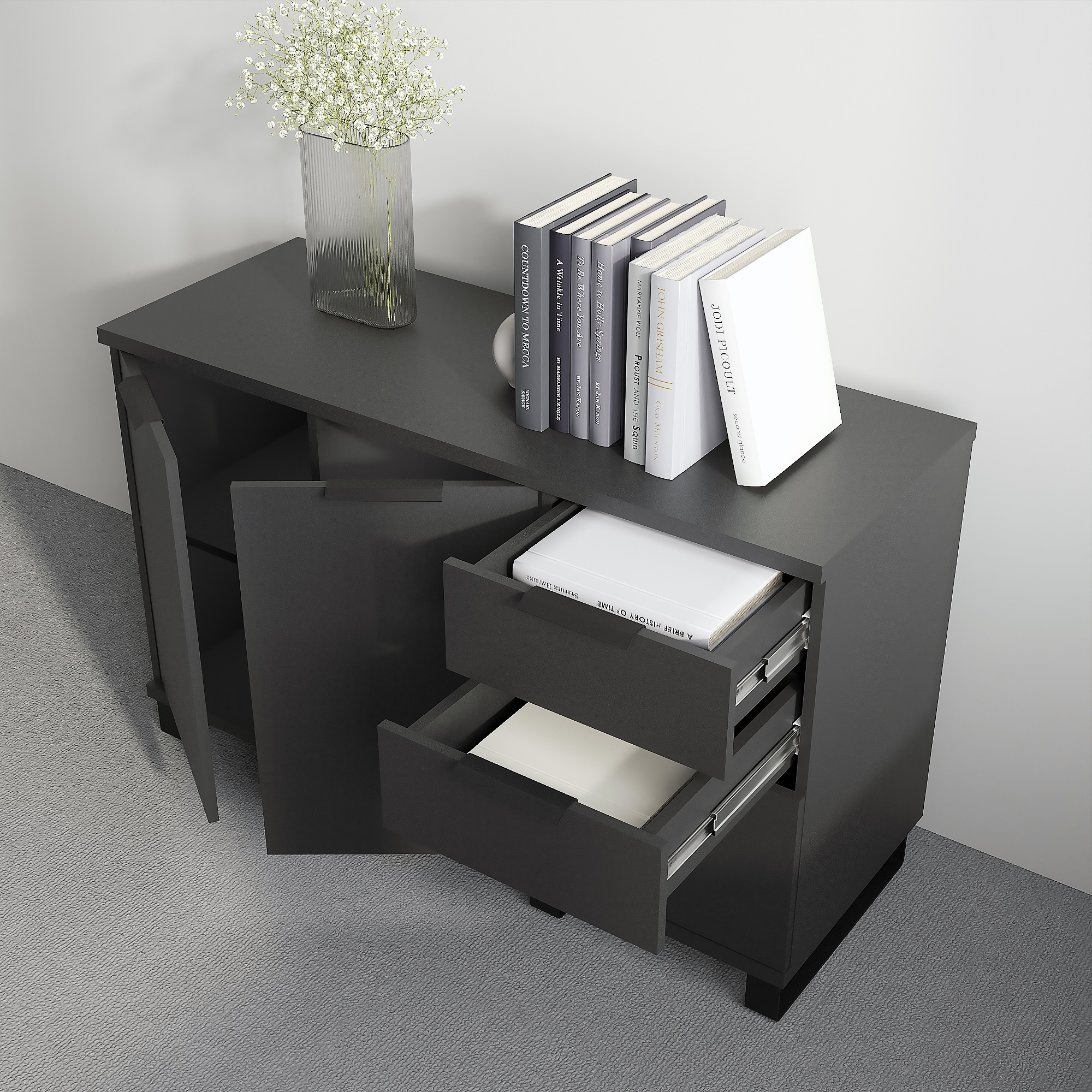 Тумба с дверцами (Фасад: дуб канзас, черный муар, Корпус А: черный графит, Корпус В: черный графит)
