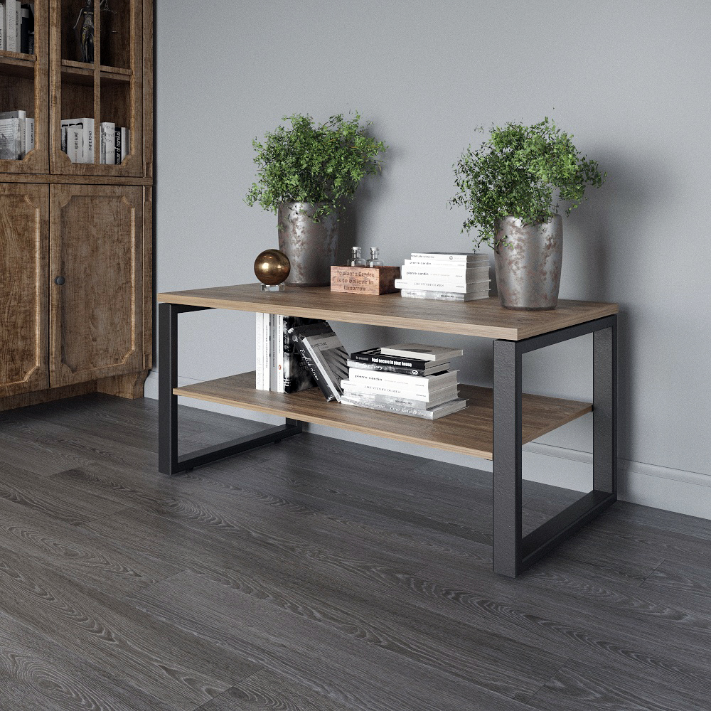 Журнальный столик на широком металлическом профиле создан из высококачественных материалов, обладает прочной конструкцией и устойчивостью к повреждениям. Он имеет удобную полку для хранения книг, журналов и других предметов.