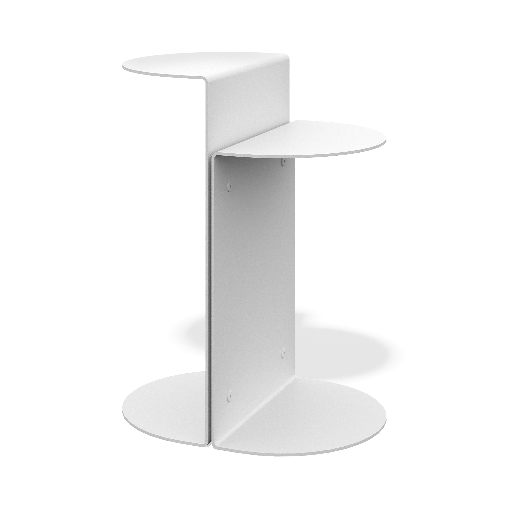 Минималистичный стол на металлокаркасе сочетает в себе функциональность и стиль. Две удобные поверхности различной высоты позволяют использовать стол как для хранения мелочей, так и для создания уютной композиции с декоративными элементами.