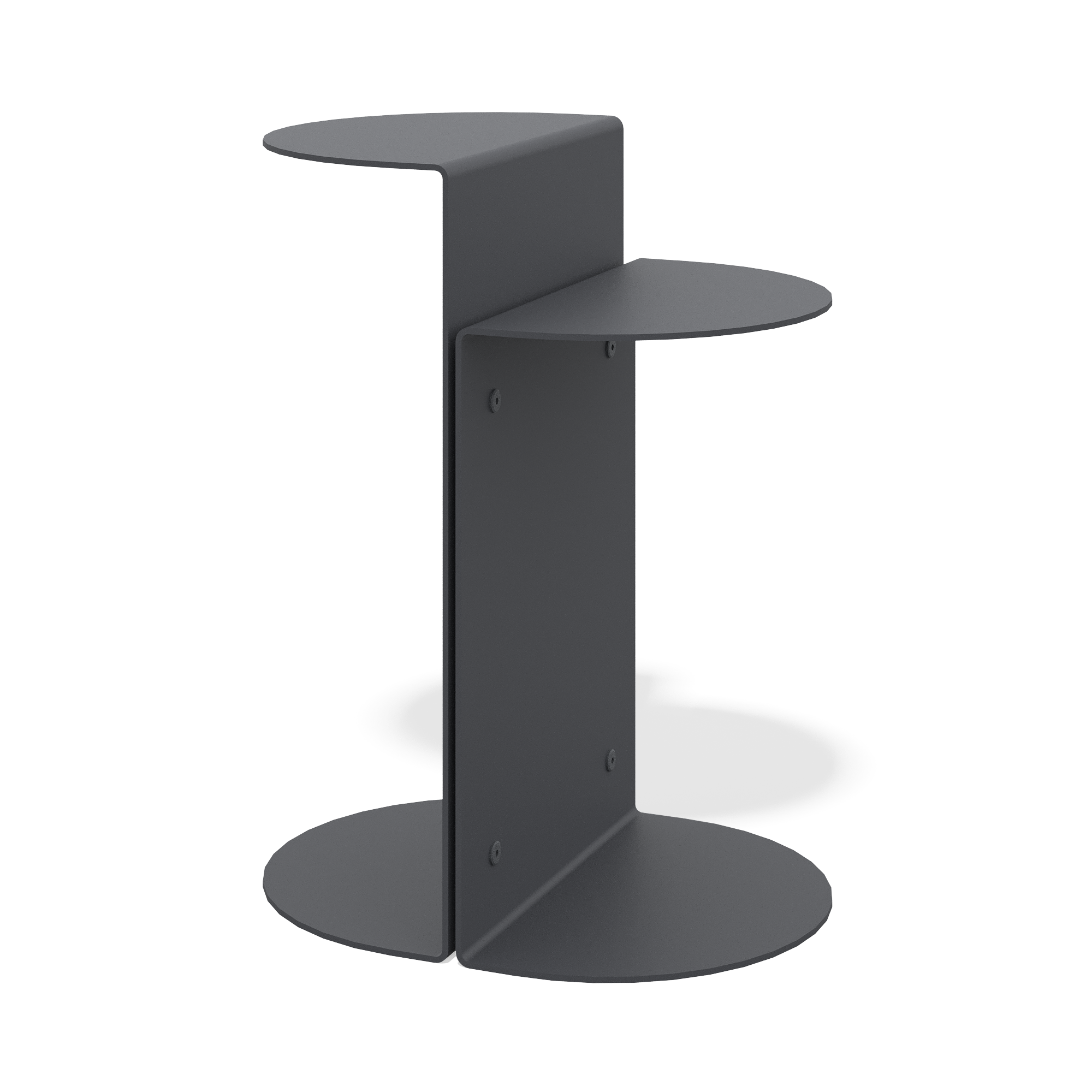 Минималистичный стол на металлокаркасе сочетает в себе функциональность и стиль. Две удобные поверхности различной высоты позволяют использовать стол как для хранения мелочей, так и для создания уютной композиции с декоративными элементами.