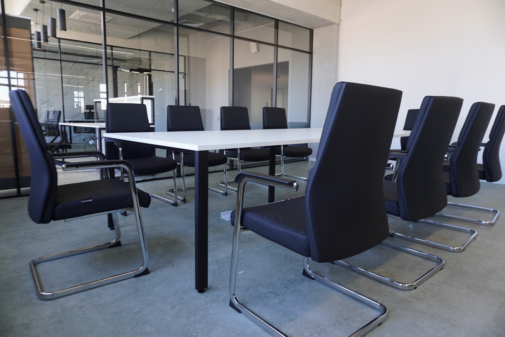 Что: бенч-системы для рабочих мест, ресепшен, прямой стол с опорой на тумбу, мобильная узкая тумба (кастомизированная по ширине), переговорный стол, шкаф-купе, стеллажная система.