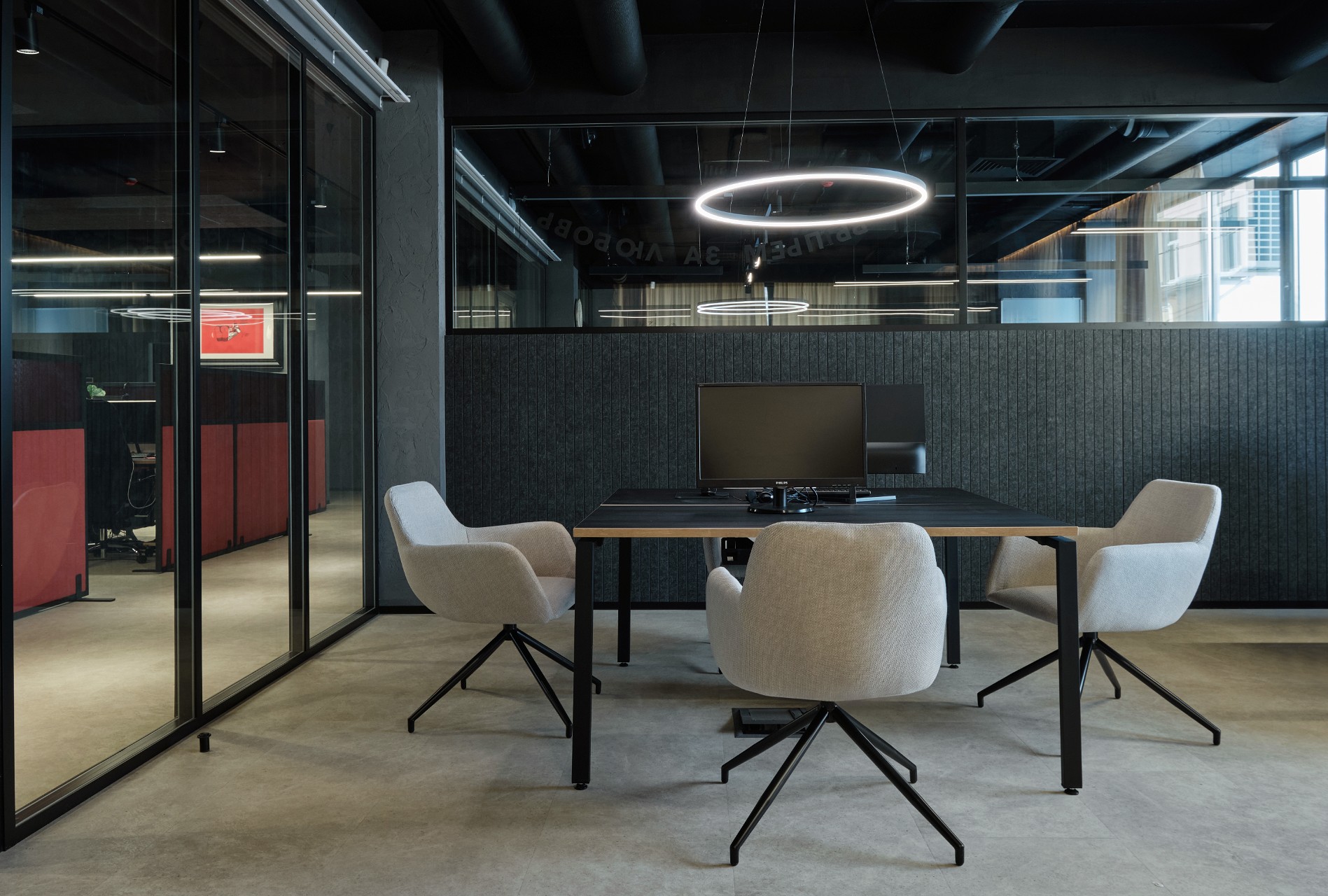 Решение: мебель в проекте использовалась как инструмент зонирования и формирования атмосферы. Авторские бенч-системы, шкафы со встроенными кашпо, журнальные столики и акустические экраны помогли разделить open space на комфортные рабочие кластеры.